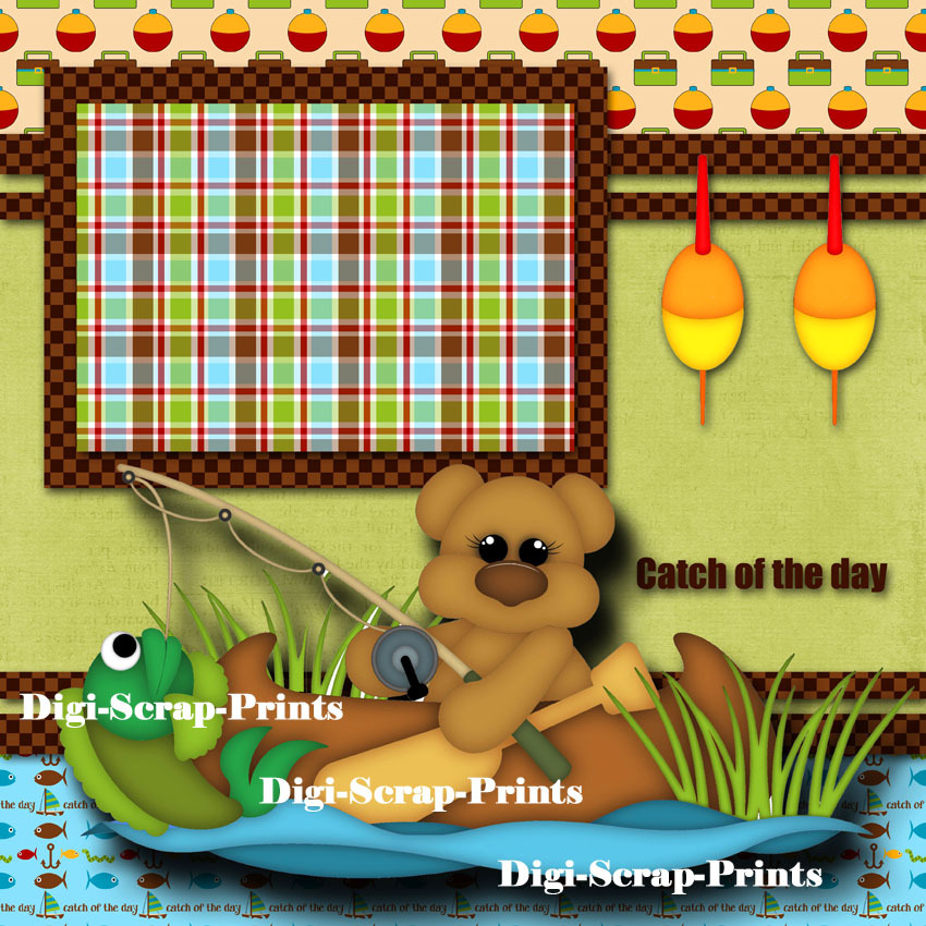как выглядит FISH TALES 2 premade scrapbook pages paper piecing layout FISHING DIGISCRAP фото