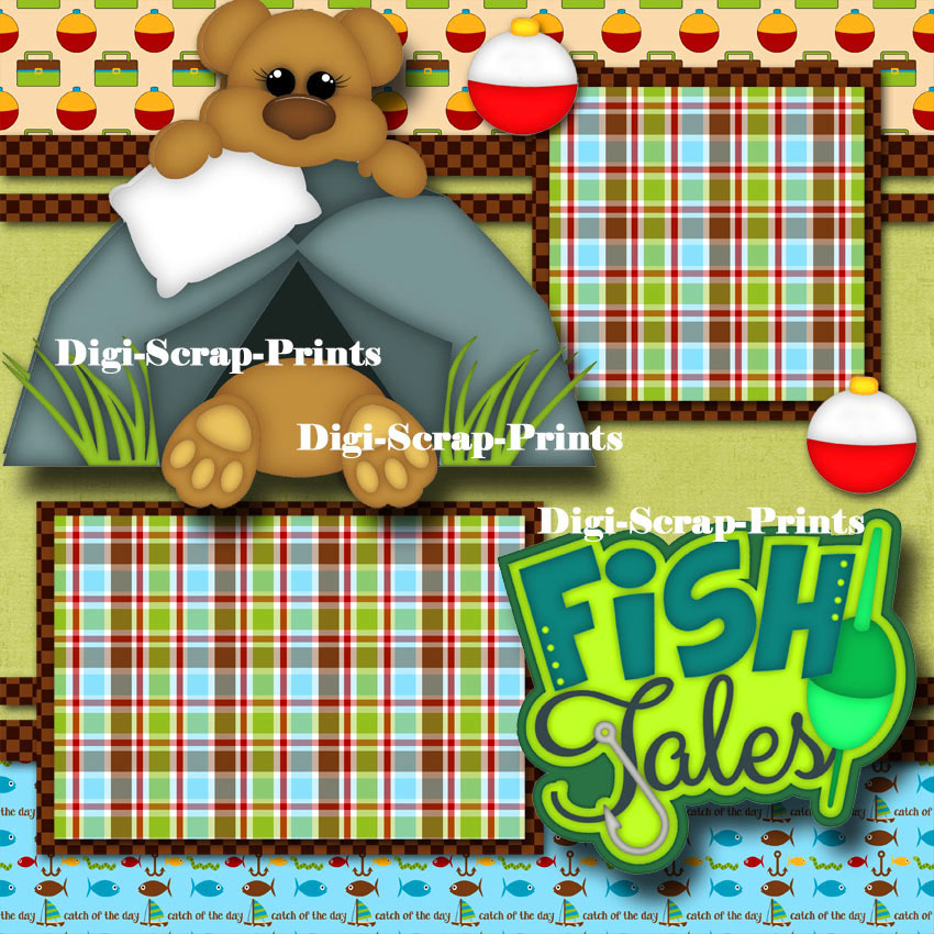 FISH TALES 2 premade scrapbook pages paper piecing layout FISHING DIGISCRAP