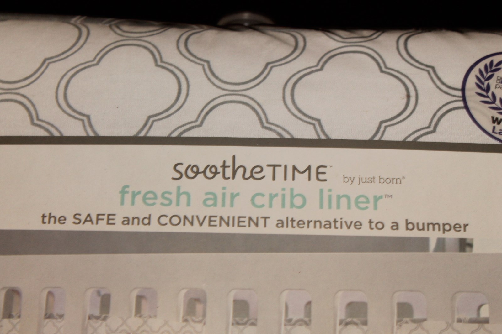 Just Born SootheTime Fresh Air Crib Liner Gray White new