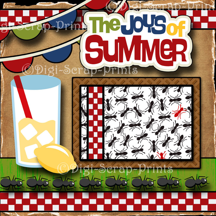JOYS OF SUMMER 2 premade scrapbook pages paper piecing layout PICNIC DIGISCRAP