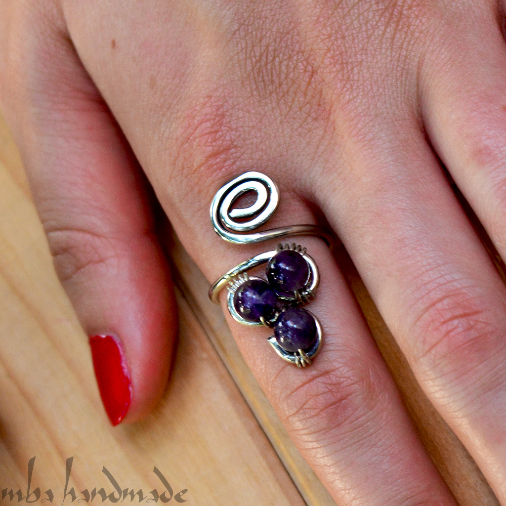 как выглядит Amethyst Crystals Ring - Any Size - Handmade Jewelry фото