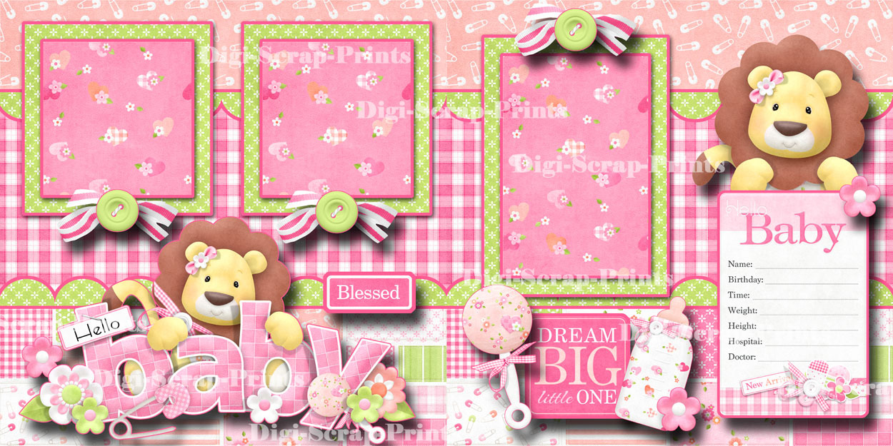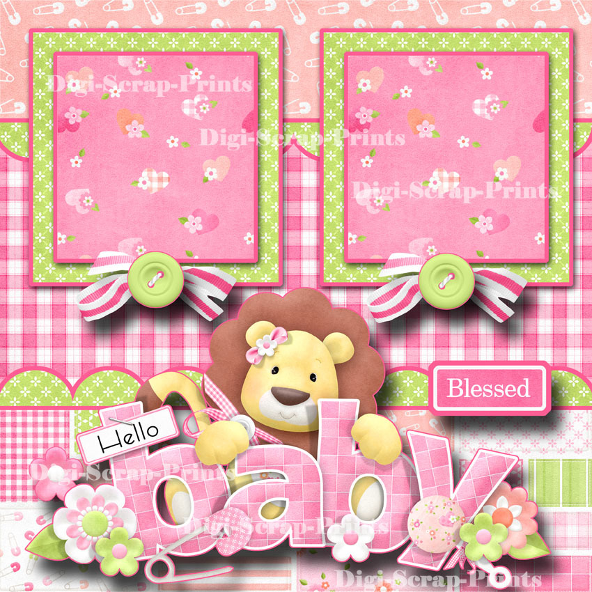 BABY GIRL 2 pre-made scrapbook pages paper piecing layout BY DIGISCRAP A0059