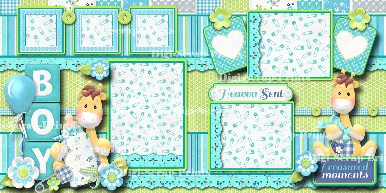 BABY BOY premade scrapbook pages paper piecing layout for album DIGISCRAP A0045