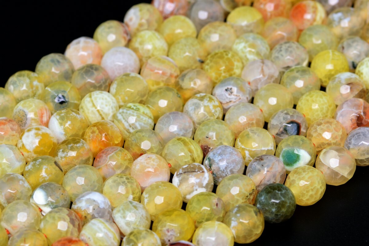 как выглядит 10MM Natural Lemon Yellow Cracked Agate Beads A Faceted Round Loose Beads 7.5" фото