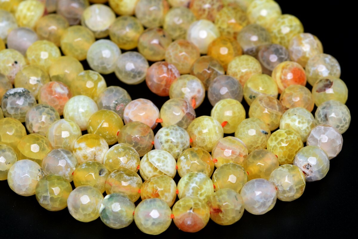 10MM Natural Lemon Yellow Cracked Agate Beads A Faceted Round Loose Beads 7.5