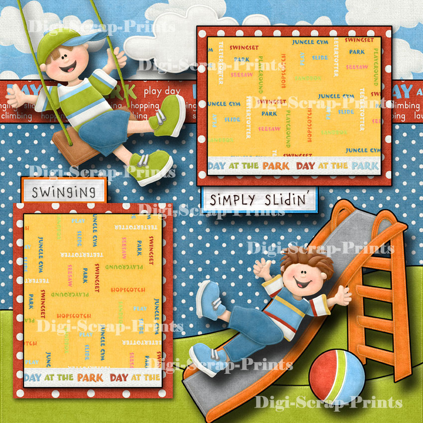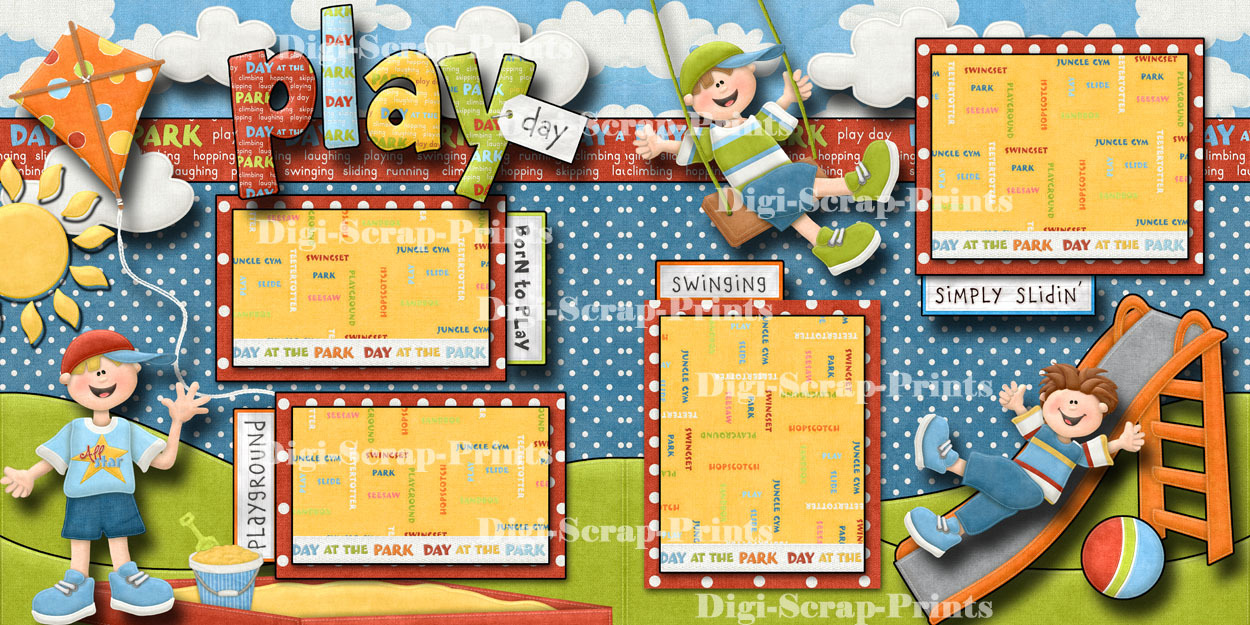 PLAY DAY BOY PARK 2 premade scrapbook pages paper piecing printed DIGISCRAP