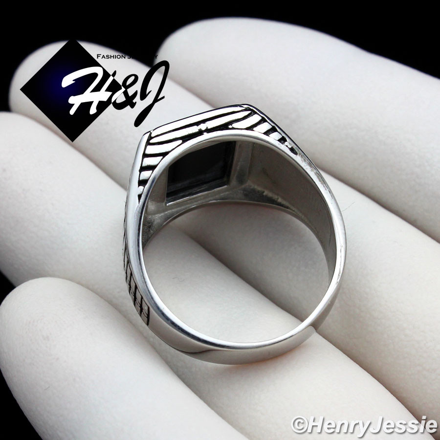 как выглядит MEN 925 STERLING SILVER BLACK PLATED/SILVER RECTANGLE BLACK ONYX RING SR94 фото