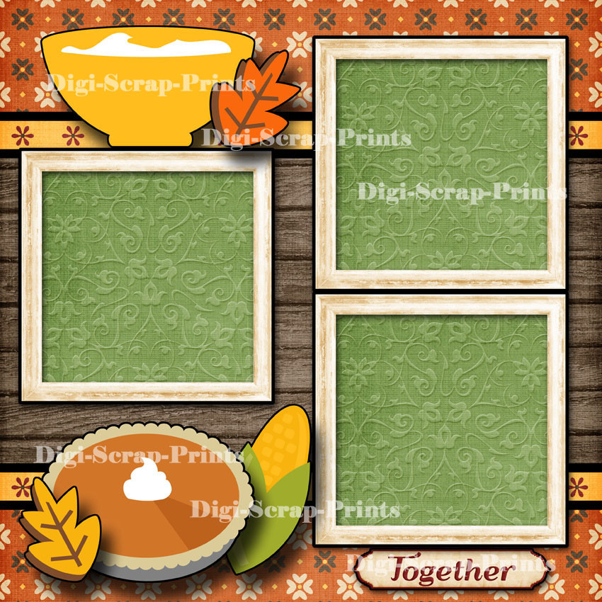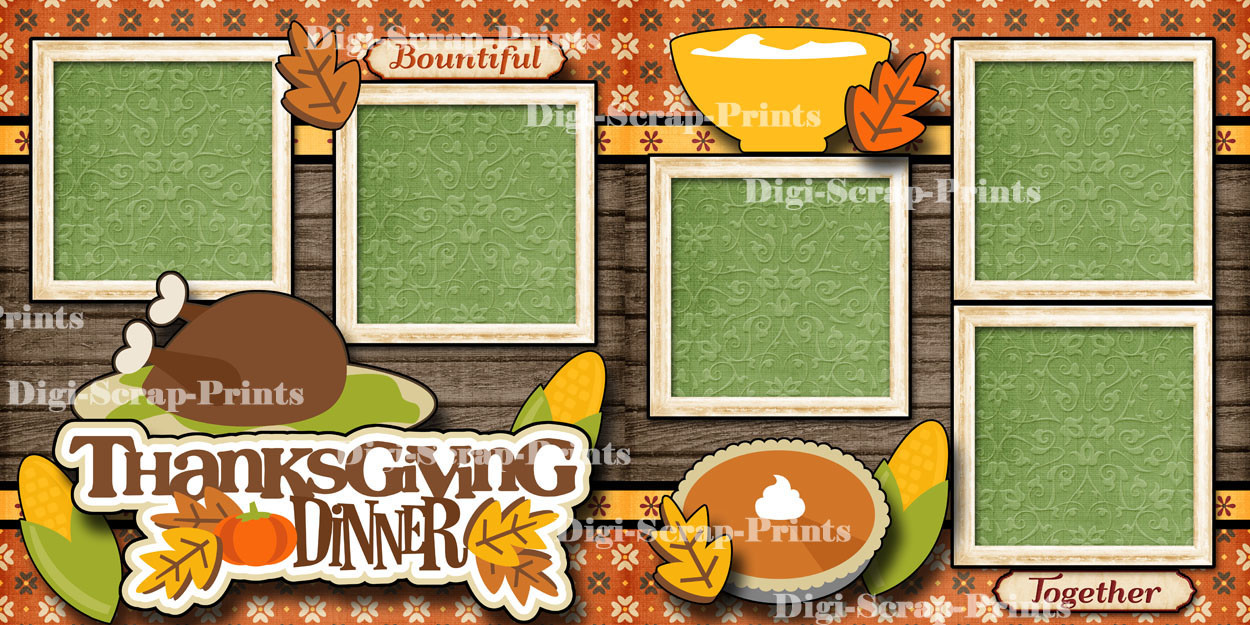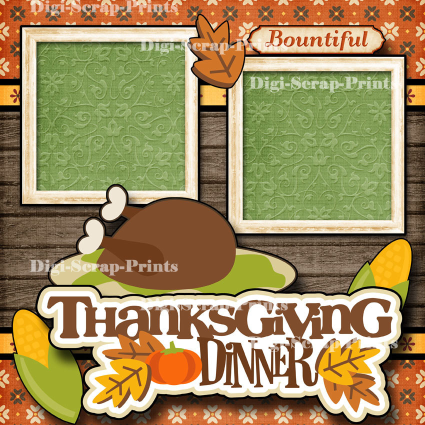 THANKSGIVING DINNER 2 premade scrapbook paper piecing layout 12X12 DIGISCRAP
