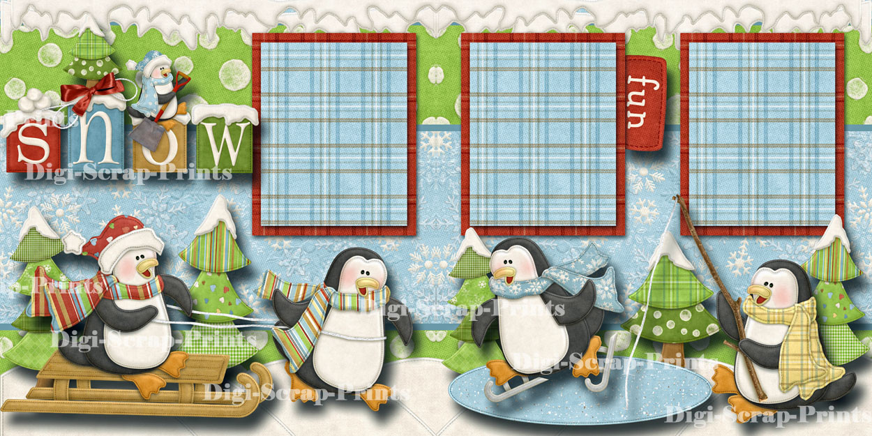 WINTER SNOW 2 premade scrapbook pages paper piecing layout for ablum DIGISCRAP