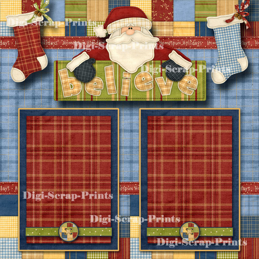 CHRISTMAS BELIEVE SANTA 2 premade scrapbook pages paper piecing DIGISCRAP A0140