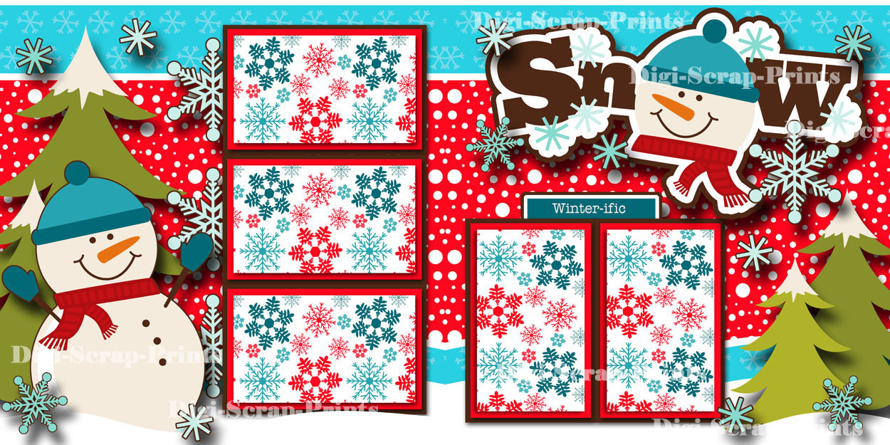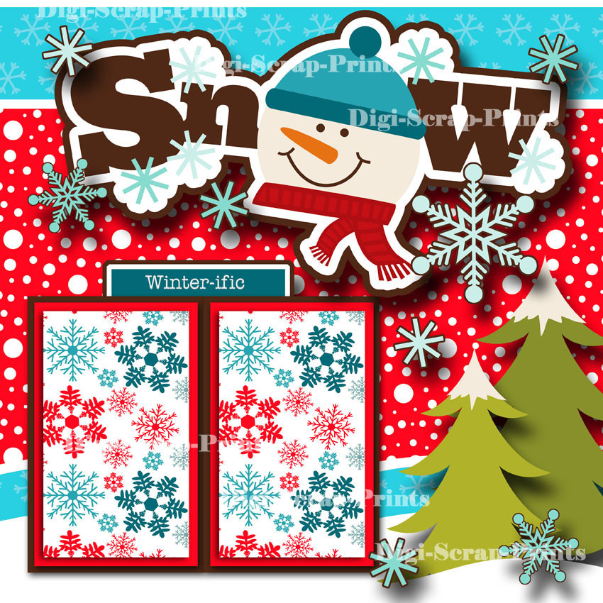 SNOW WINTER 2 premade SCRAPBOOK pages paper piecing SNOWMAN LAYOUT BY DIGISCRAP