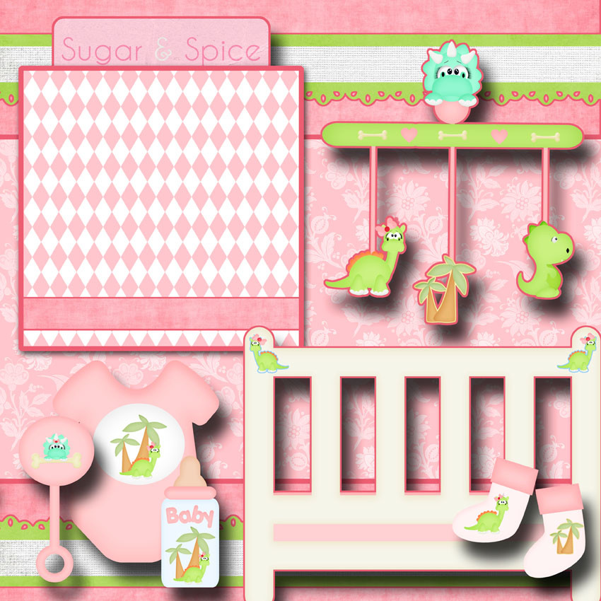 BABY GIRL 2 pre-made scrapbook pages paper piecing layout BY DIGISCRAP A0054