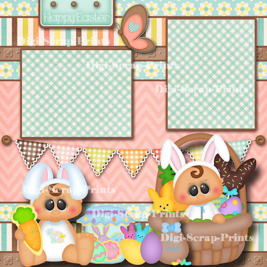 1ST EASTER 2 premade scrapbook pages 12x12 printed BABY boy girl DIGISCRAP A0456