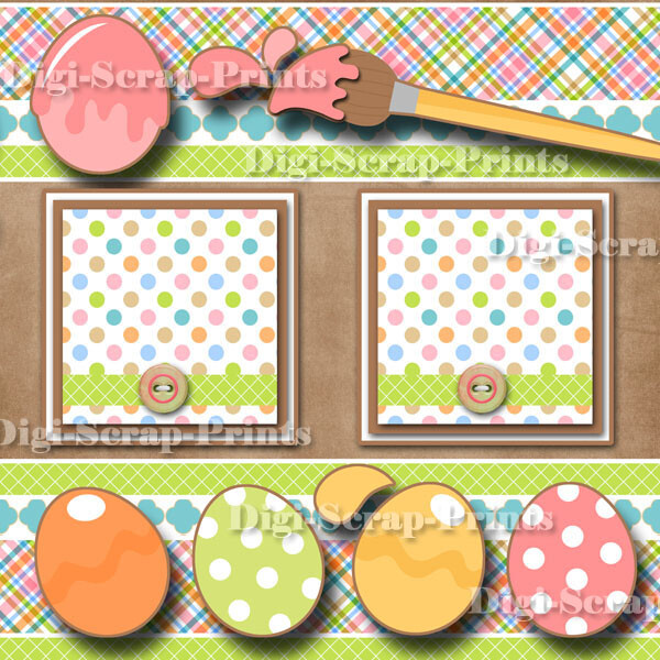 COLORING EGGS 2 premade scrapbook pages paper piecing EASTER DIGISCRAP A0443