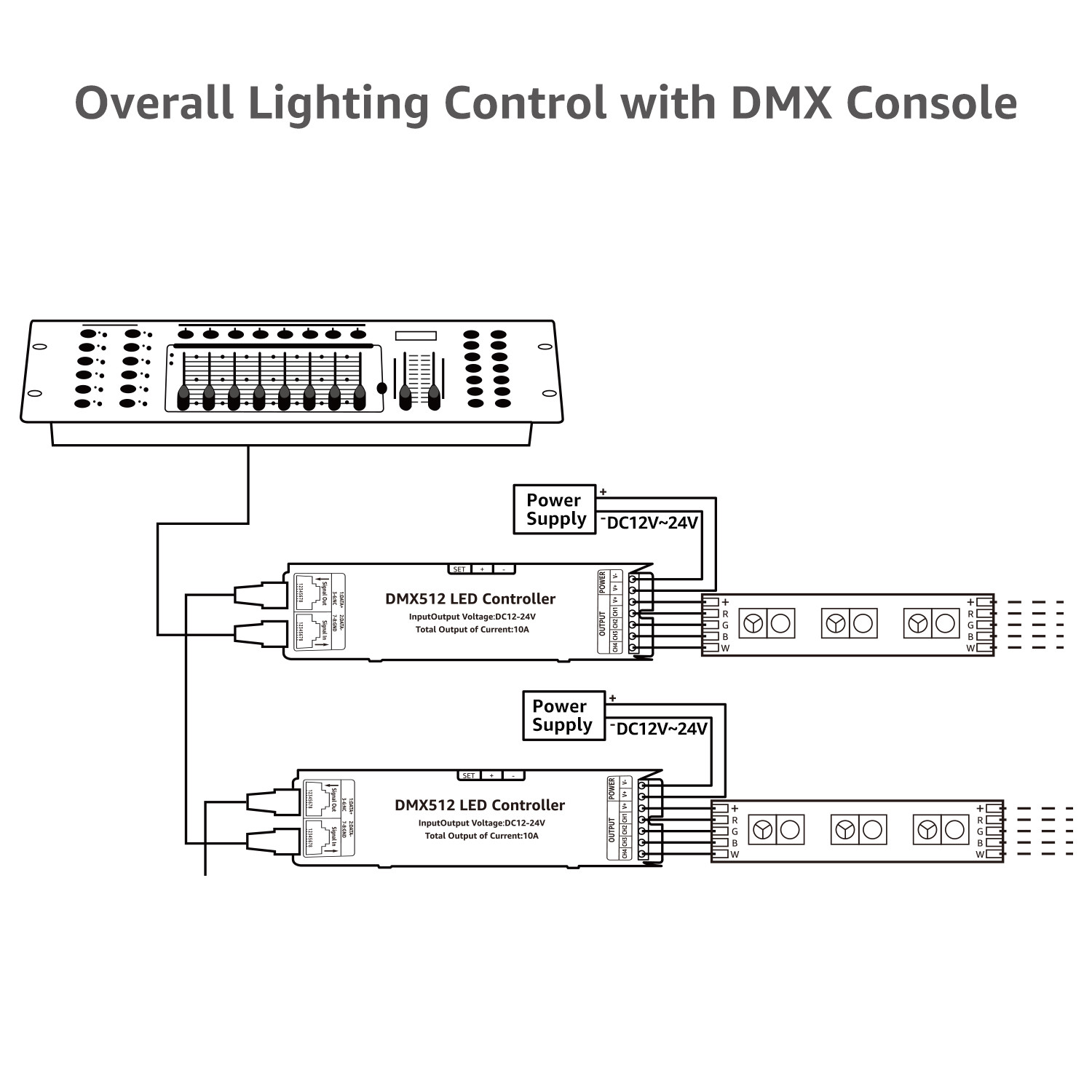 4 PACK RGBW 4 Channel Digital DMX512 Digital Tube Decoder, for 12-24V LED Lights