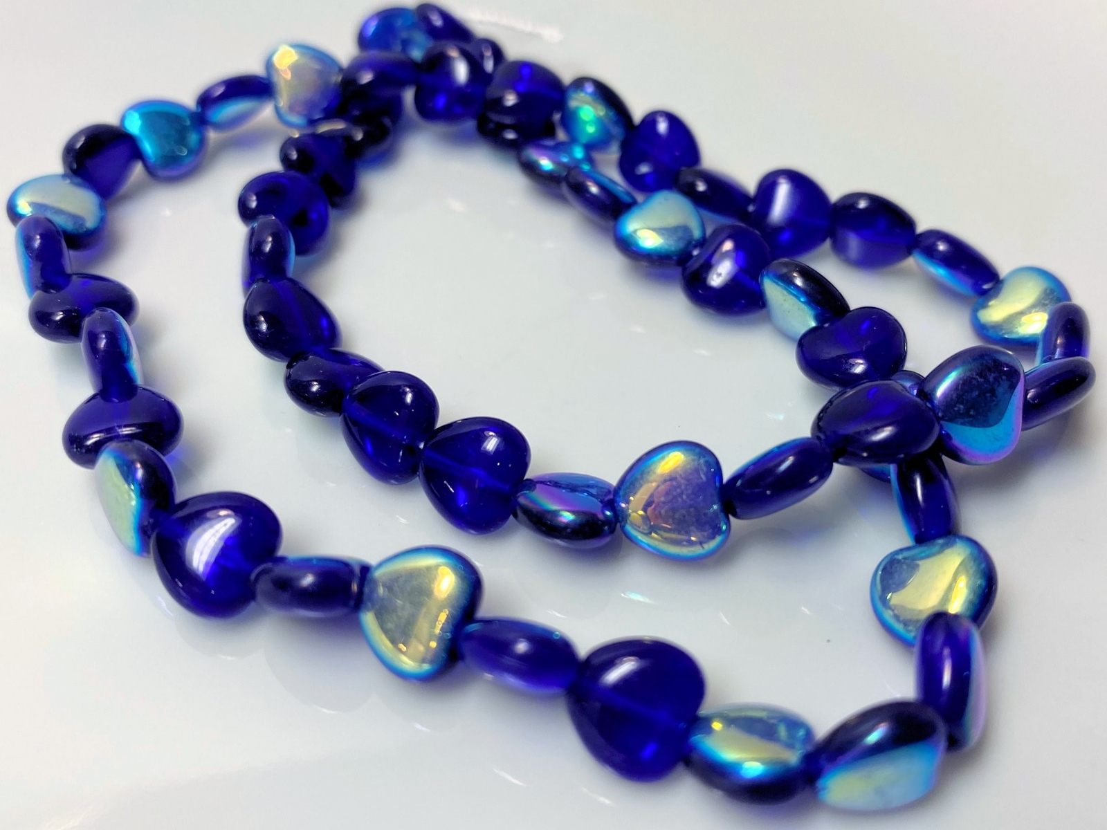 Czech Pressed Glass Lt Cobalt Blue AB 8mm HEART Beads w/ 0.9-1mm Hole 1 Std 50