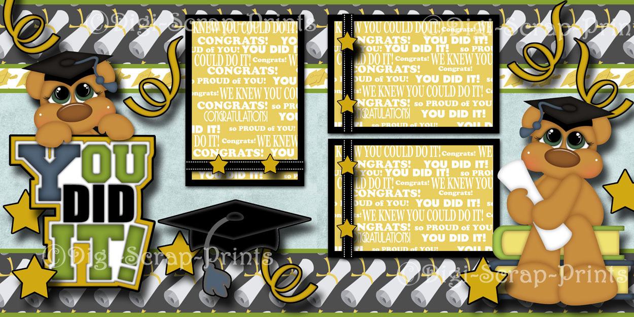 GRADUATION 2 premade scrapbook pages paper piecing layout school DIGISCRAP
