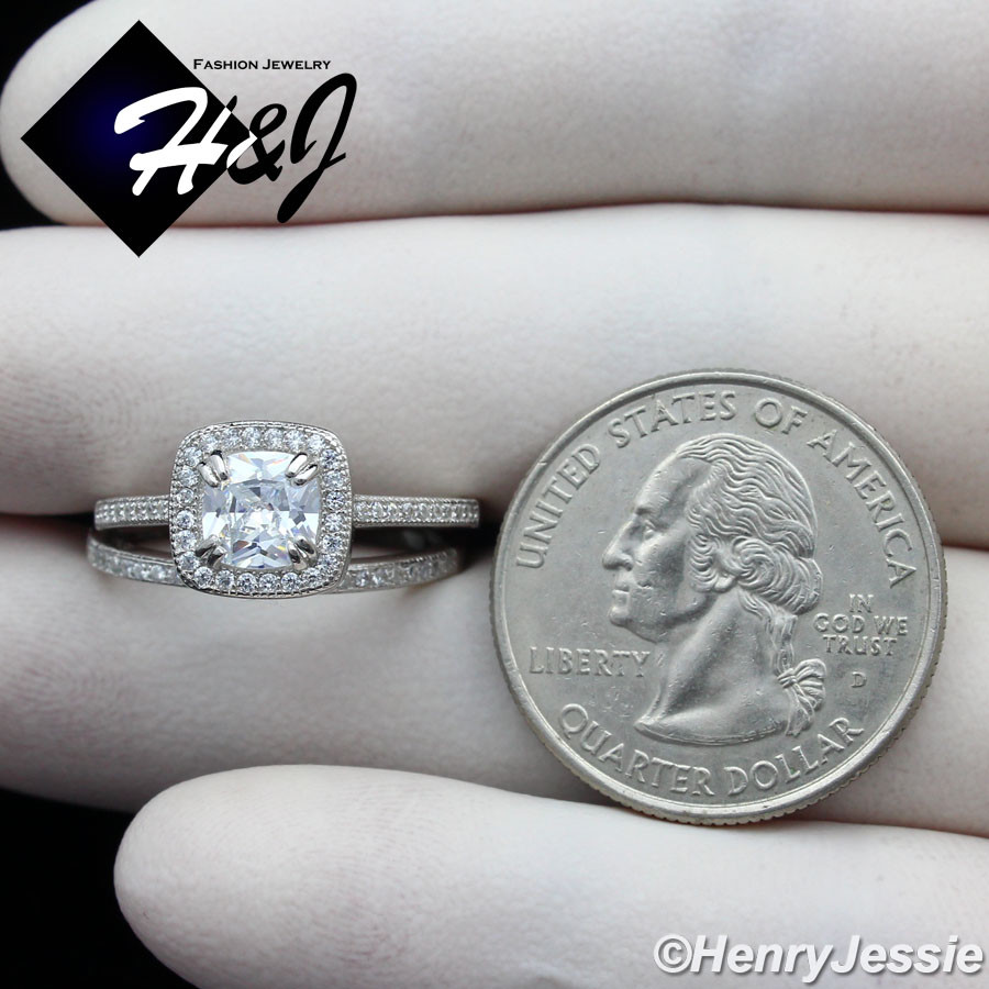 WOMEN 925 STERLING SILVER ICY CUBIC ZIRCONIA SQUARE ENGAGEMENT RING SET SR101
