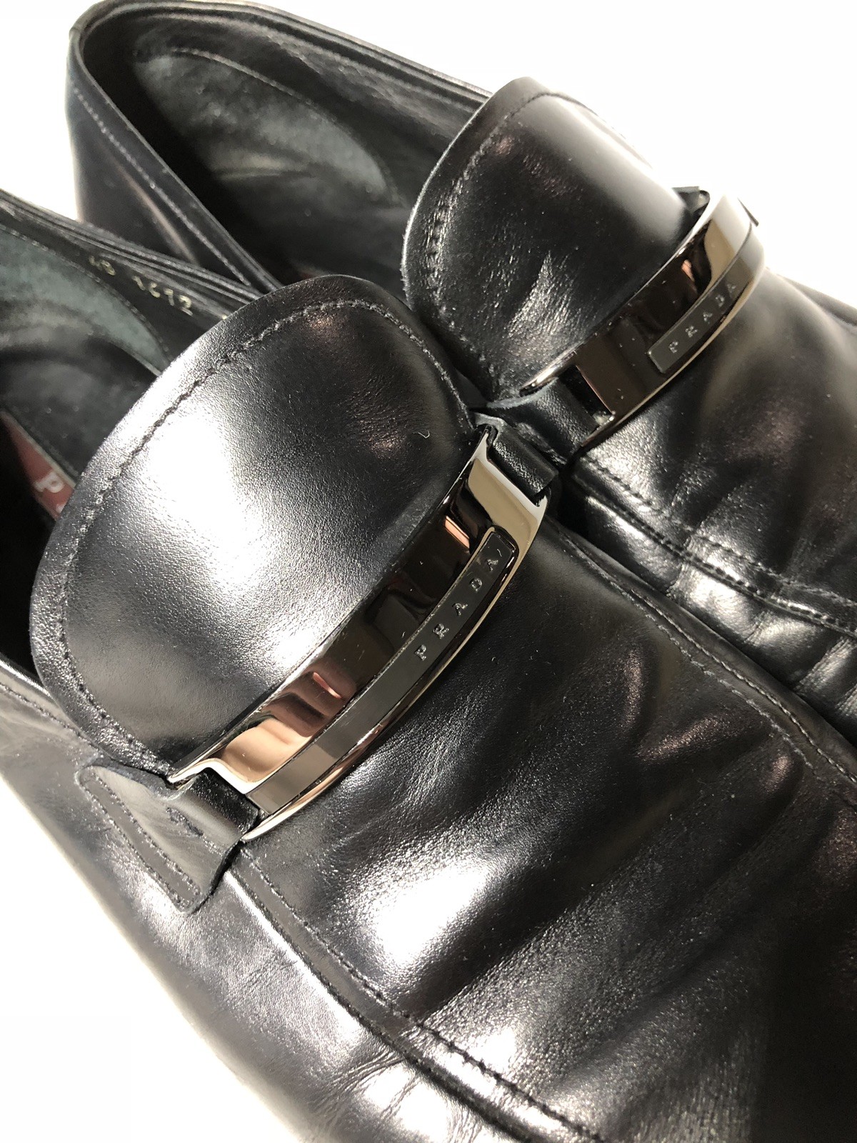 как выглядит AUTHENTIC-PRADA MENS BLK LEATHER LOAFERS PLAQUE LOGO SIZE 7 -NICE- фото