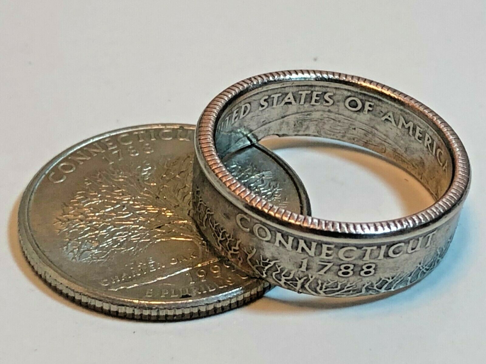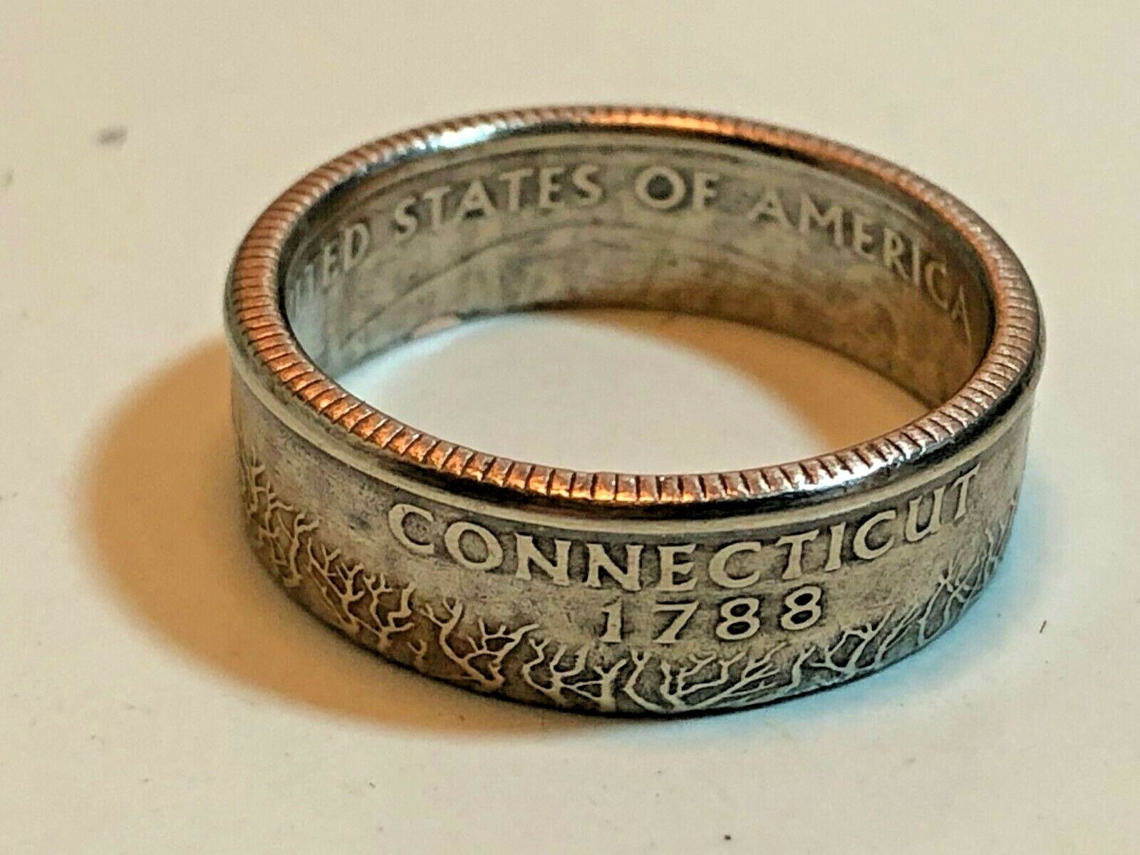Connecticut Coin Ring USA State Quarter 25 Cents Handmade Vintage Custom Jewelry