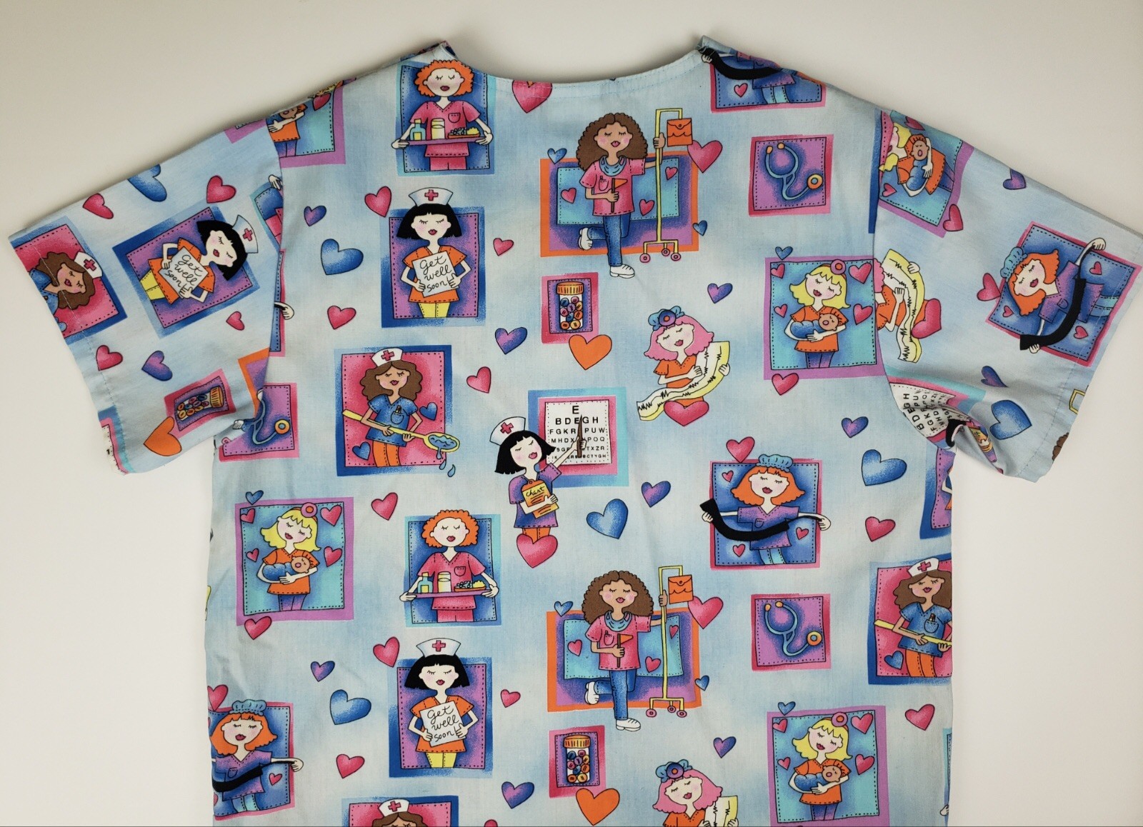 WS Fundamentals Nurse And Hearts Design Nurse Scrubs Size XS