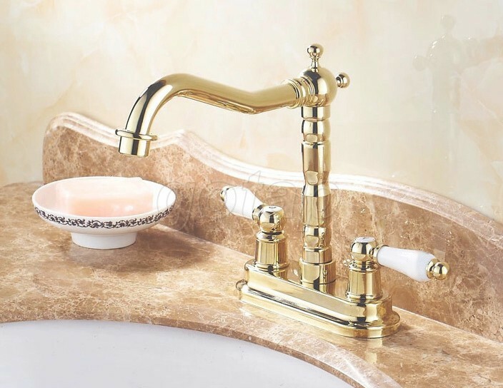 Polished Gold Brass Dual Handle Swivel Spout Kitchen Sink Bathroom Mixer Faucet