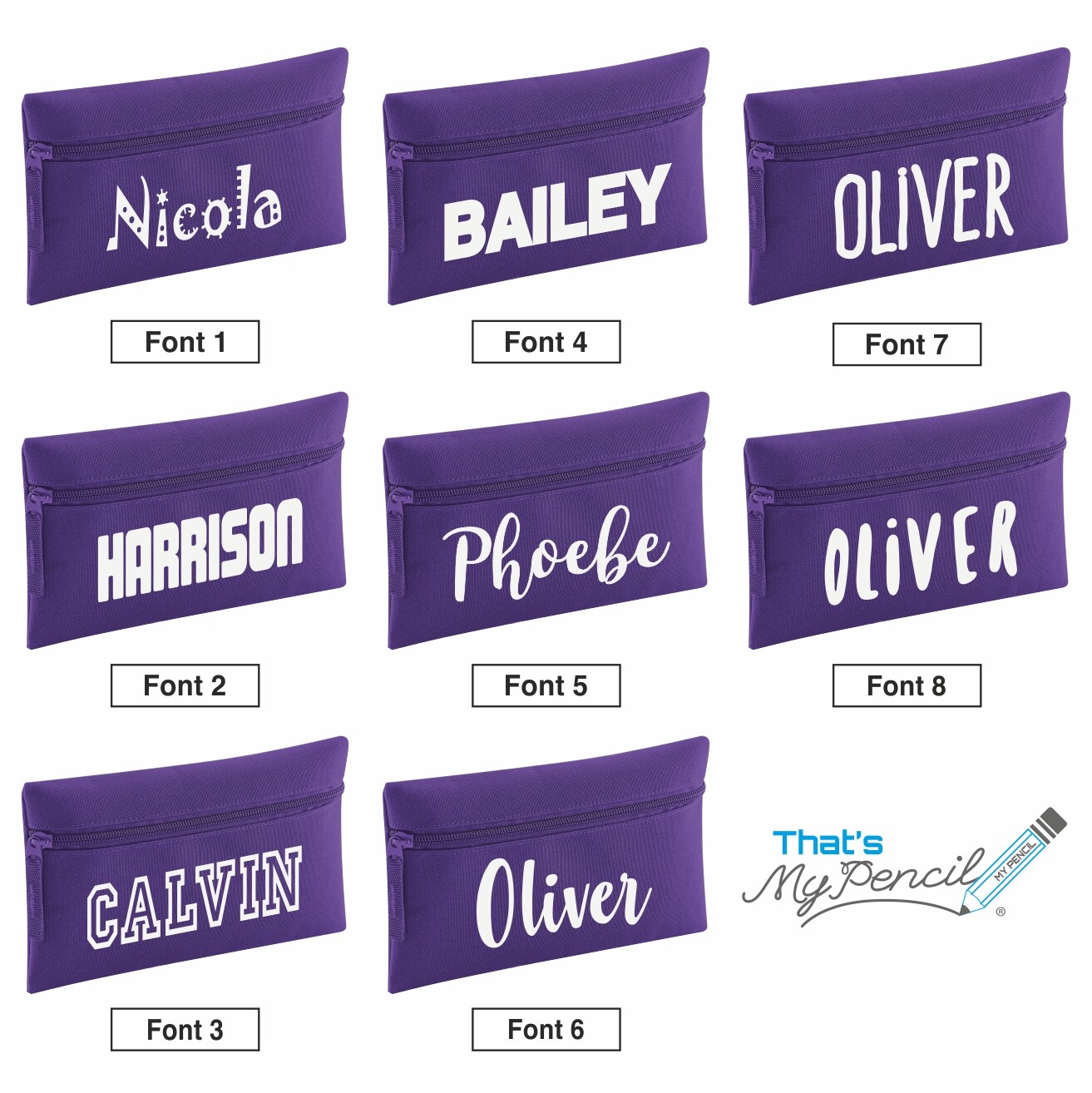 Personalised Pencil Case Printed with Name - Choice of print colours - Purple
