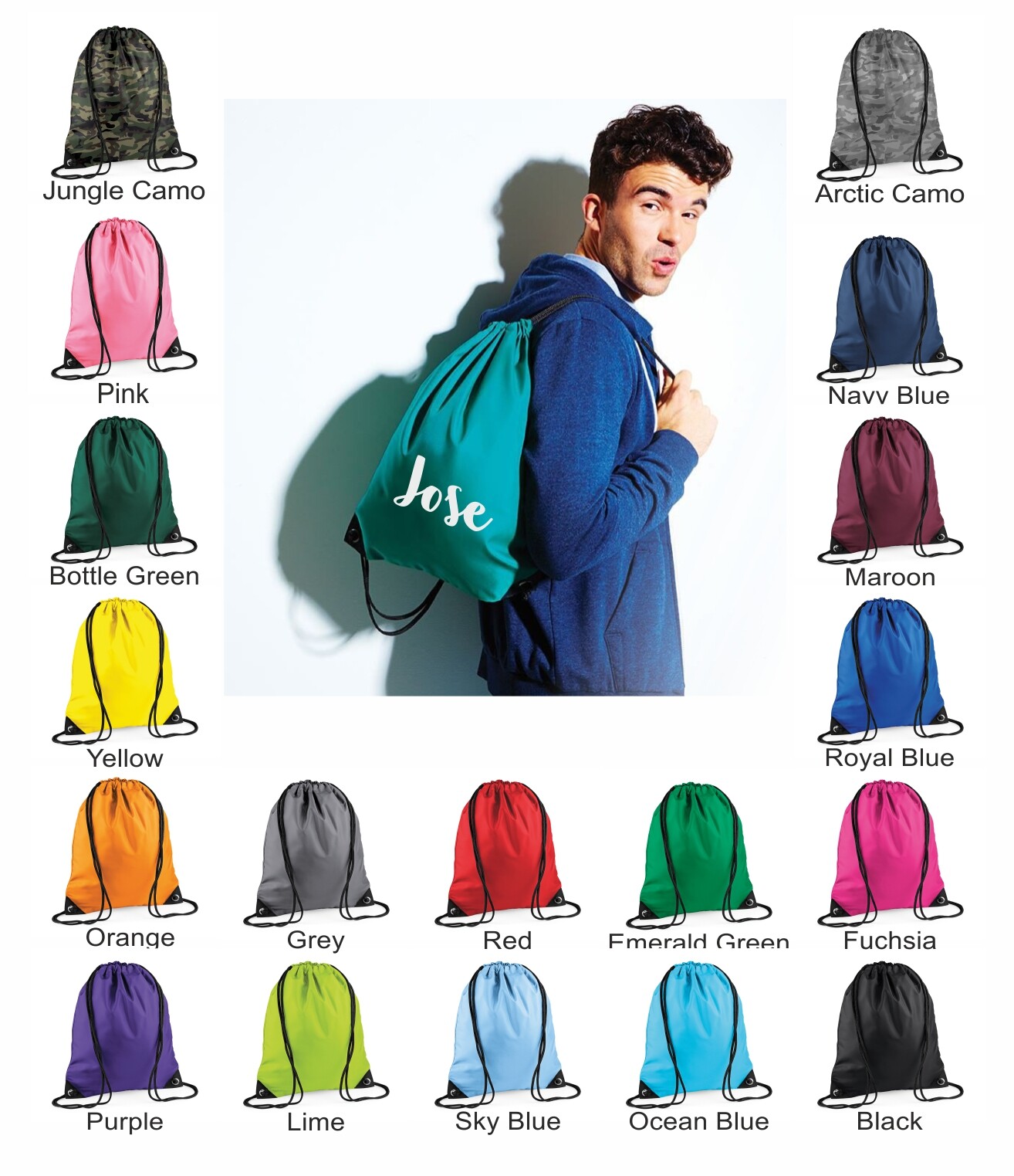 Personalised Gym Sack / Pump / Swim Drawstring Bag Printed with name - Bottle