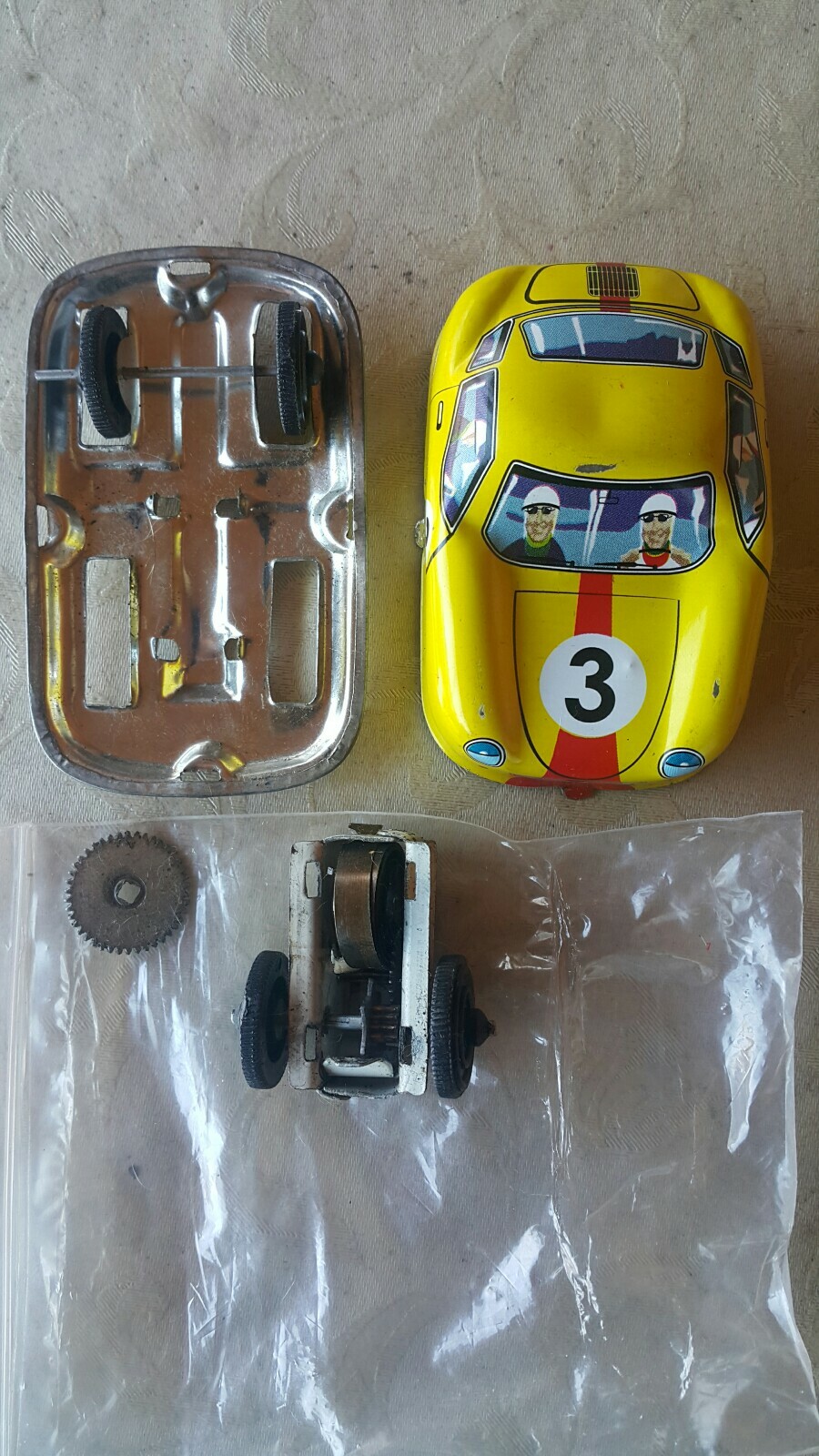 VNTG. RACE CAR TIN TOY CLOCKWORK WEST GERMANY DDR GDR AUTO MOTOR WIND UP PARTS