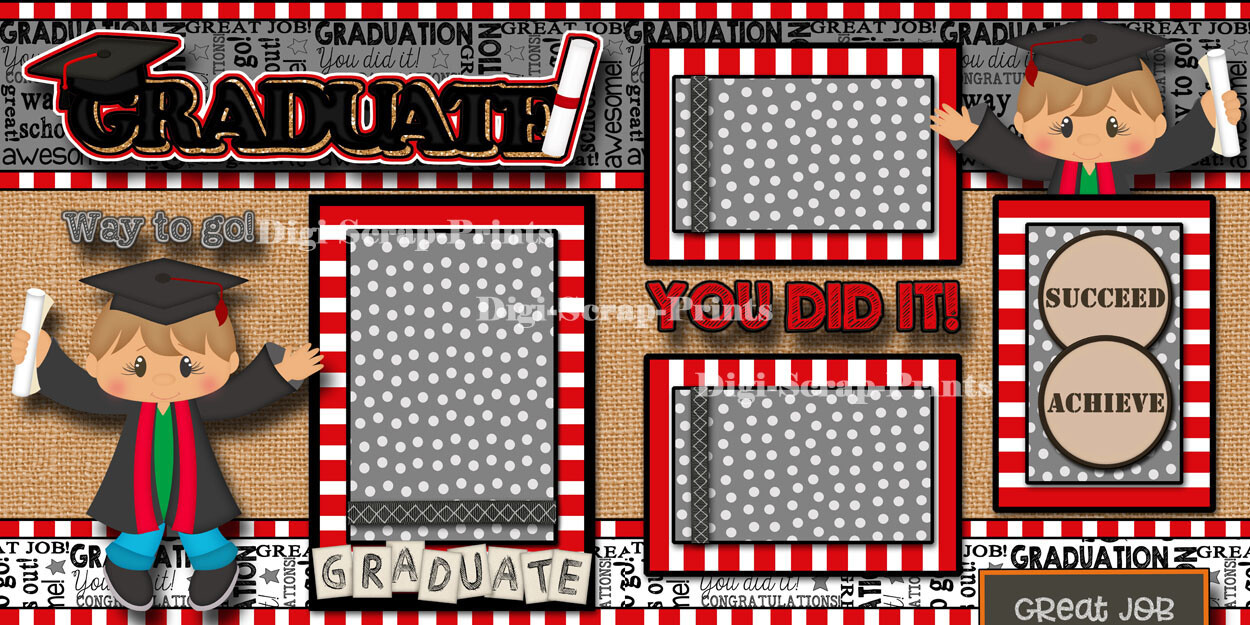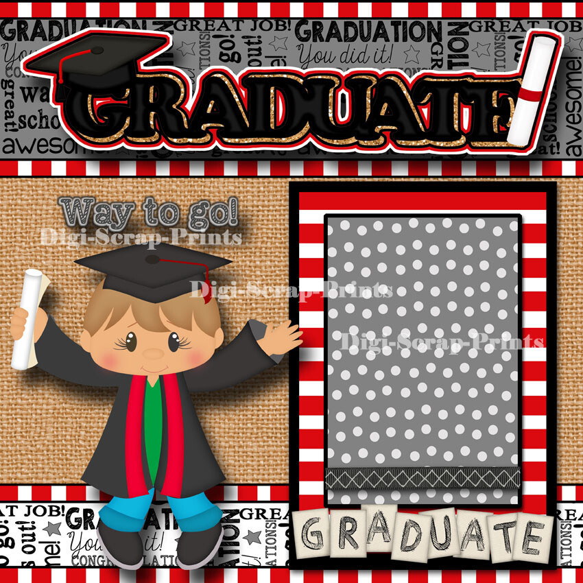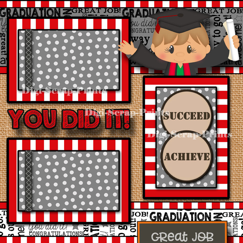 GRADUATION boy 2 premade scrapbook pages paper piecing school DIGISCRAP A0197