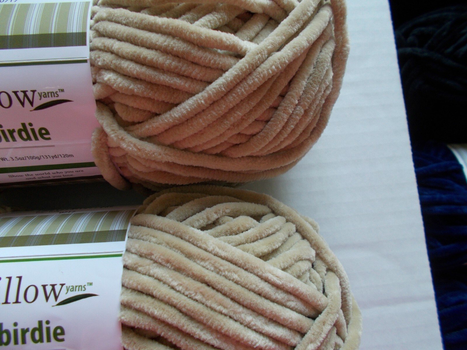 как выглядит Willow Yarns Birdie chenille yarn, Beach Sand, lot of 2 131 yds ea фото