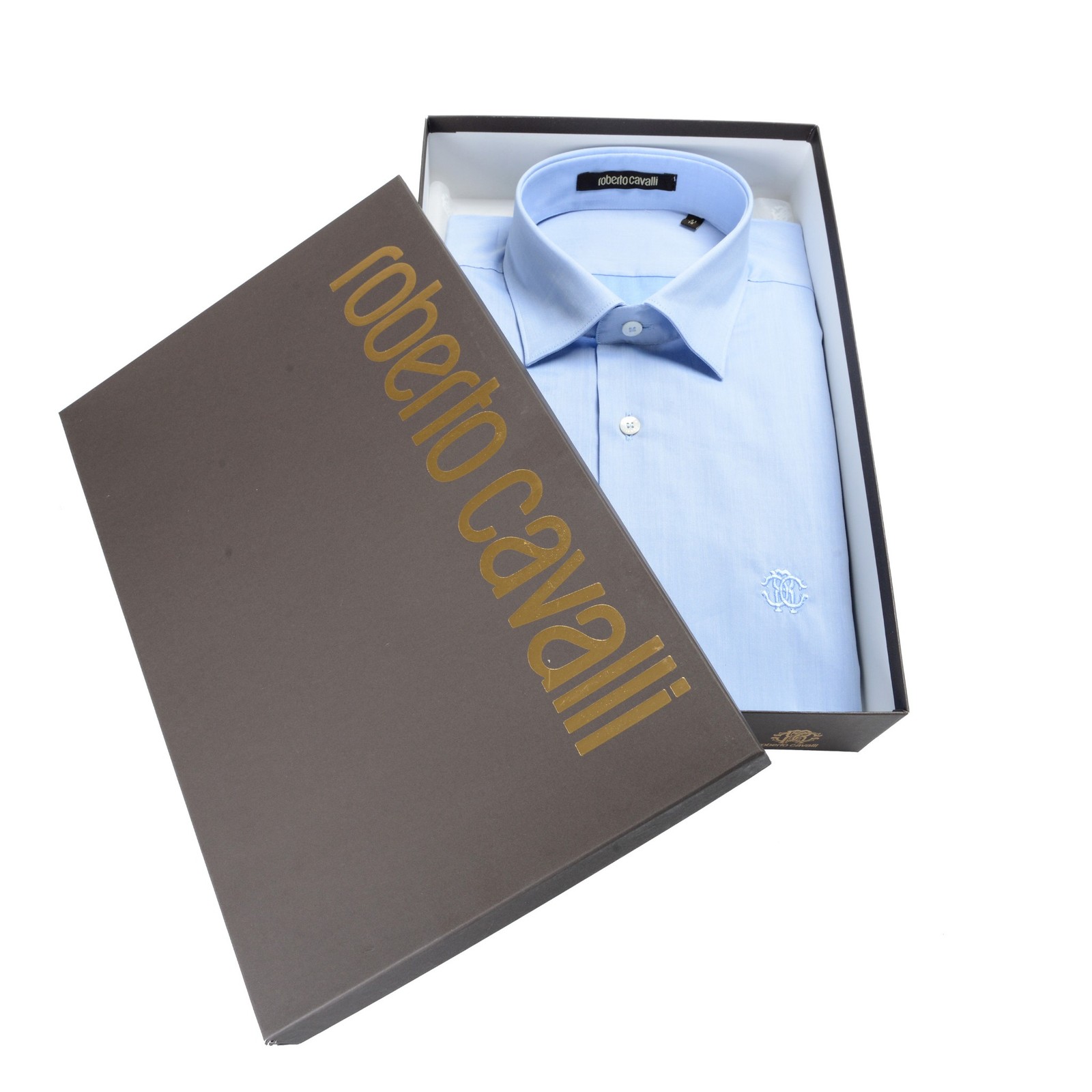 Roberto Cavalli Men's Light Blue Slim Long Sleeve Dress Shirt