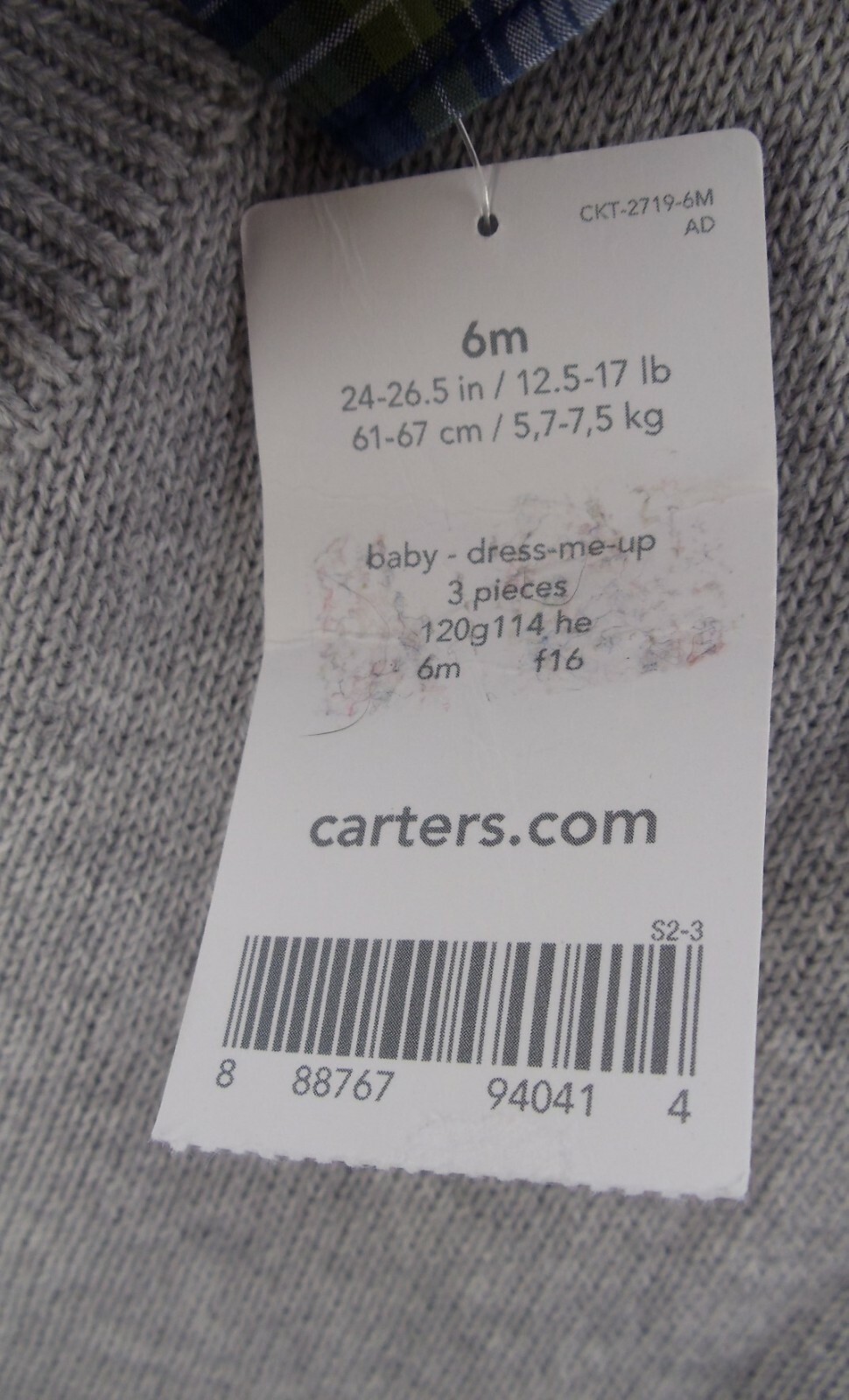 как выглядит NWT Carters 6 Mo. Dress Me Up Set Boy 2 Pc. Outfit Plaid Shirt Grey Sweater Vest фото