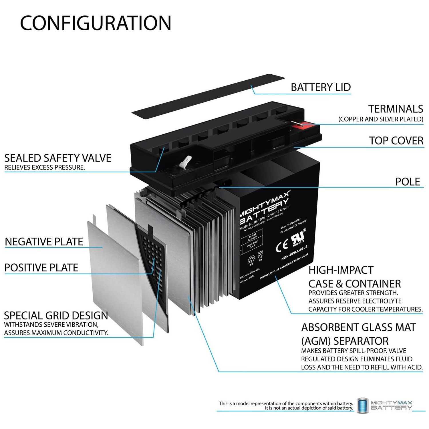 как выглядит Mighty Max Ml18-12 - 12 Volt 18AH F2 SLA Battery - Pack 4 фото