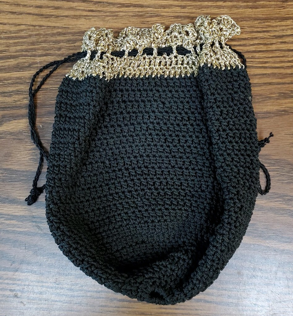 как выглядит Vintage Black and Gold Woven Drawstring Purse фото
