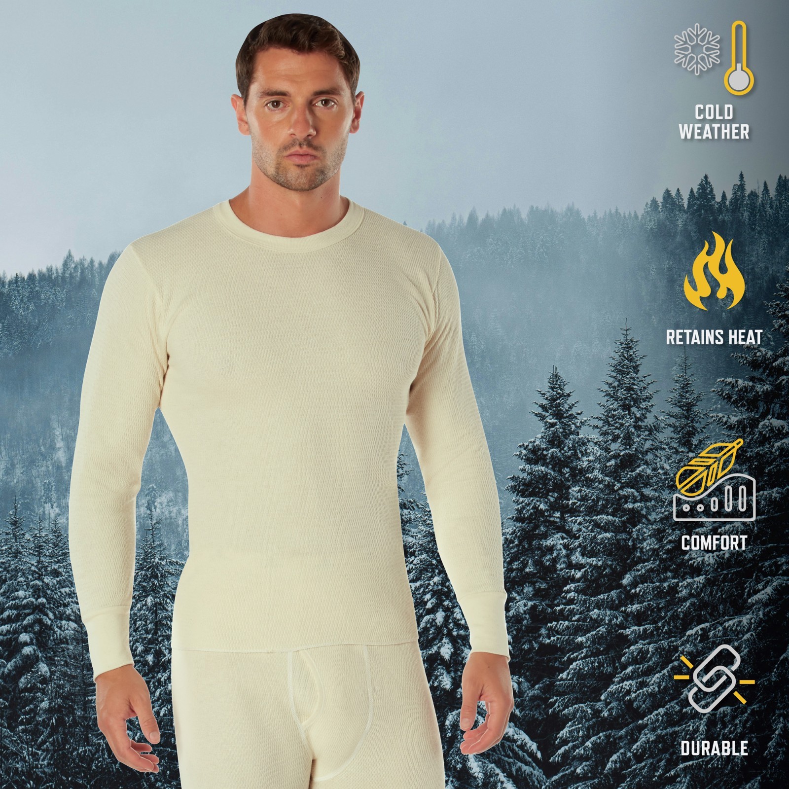 как выглядит White Heavyweight Cold Weather Winter Thermals Knit Underwear Shirt Long Johns фото