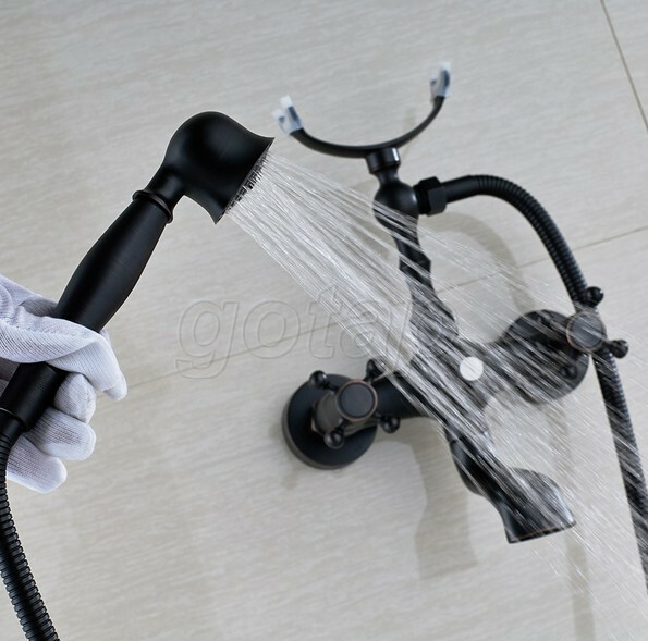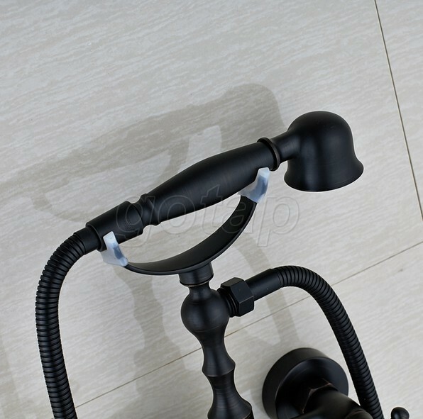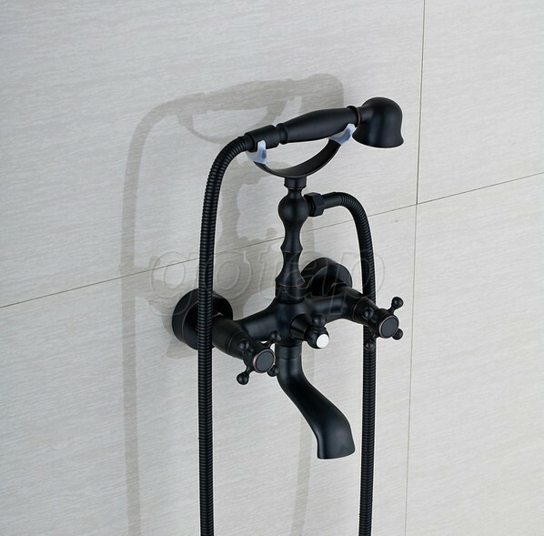Black Oil Rubbed Bronze Wall Mount Clawfoot Bath Tub Faucet With Handheld Shower