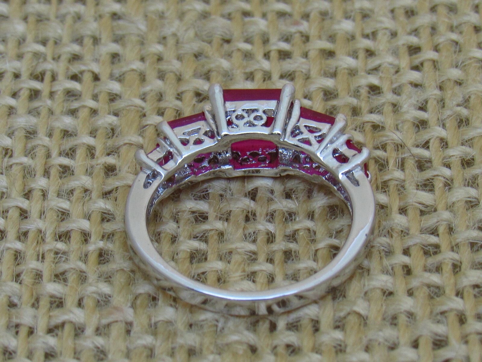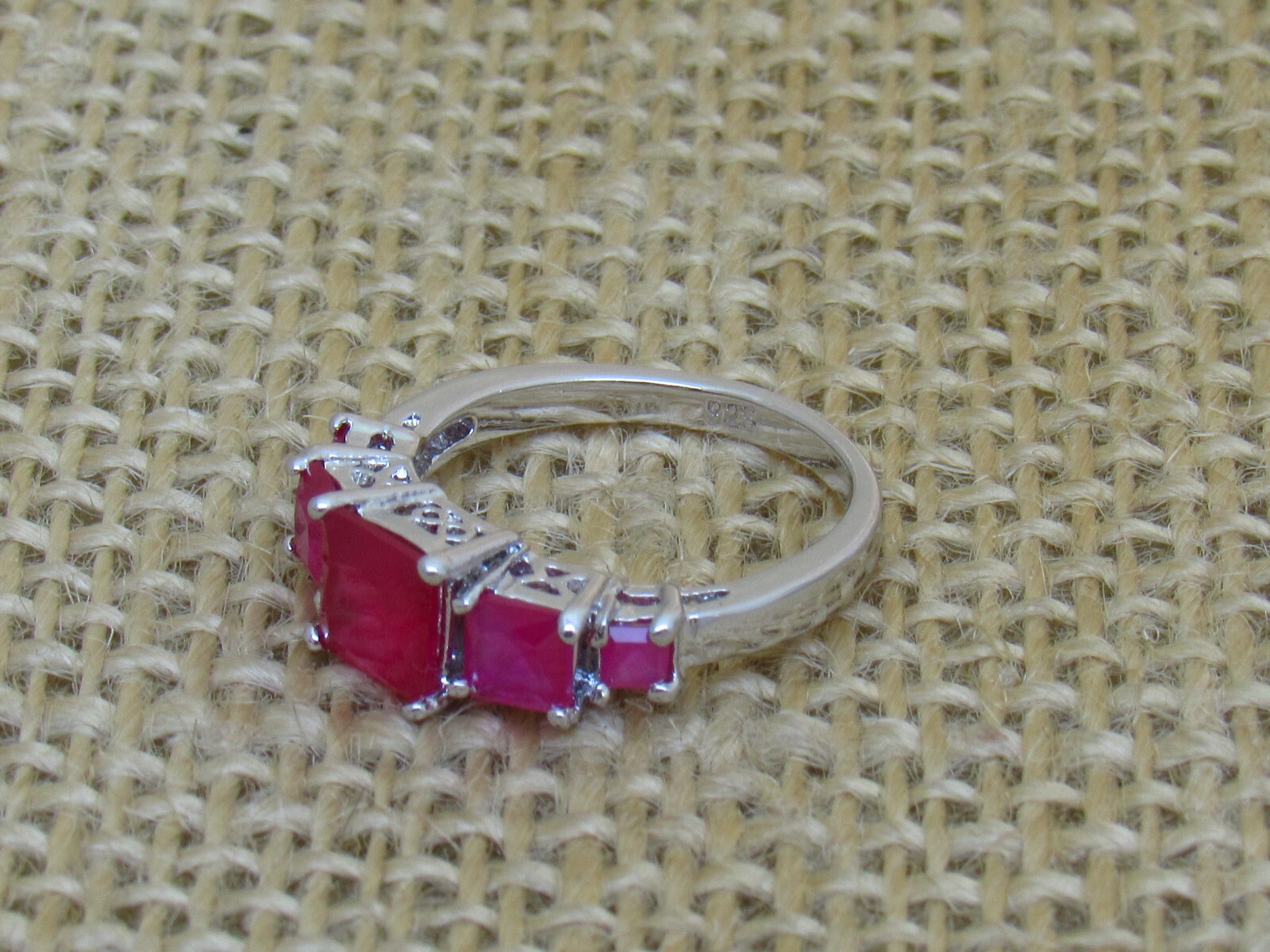 Stunning 5 Rubilite Stone Ring .925 Sterling Silver Size 6 Weight 3 Grams