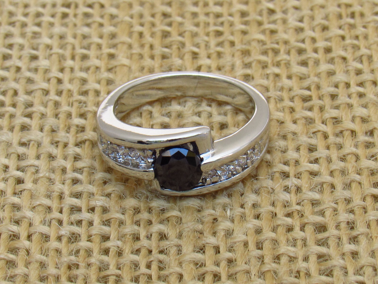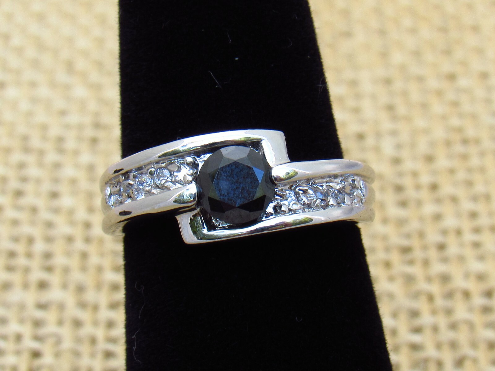 как выглядит Lovely "Lab" Black Onyx and White Topaz Silver Ring Size 7.75 Weighs 6 Grams фото