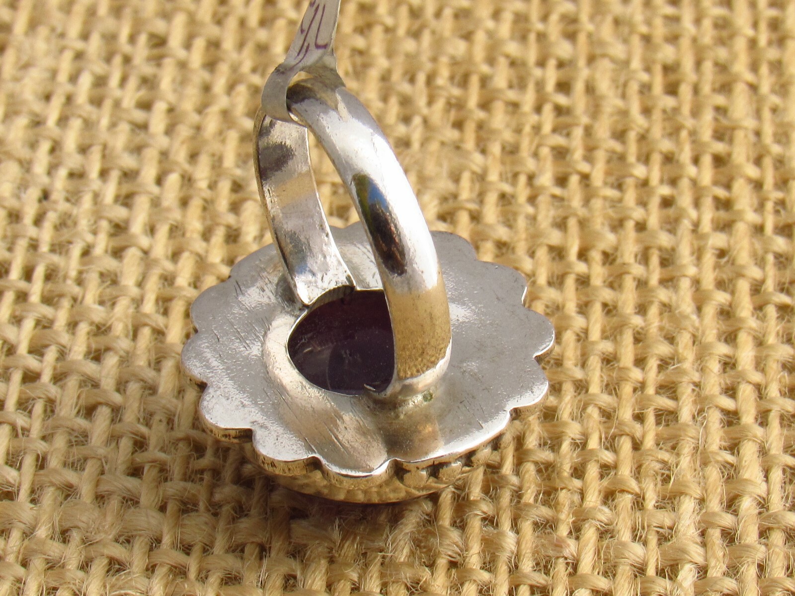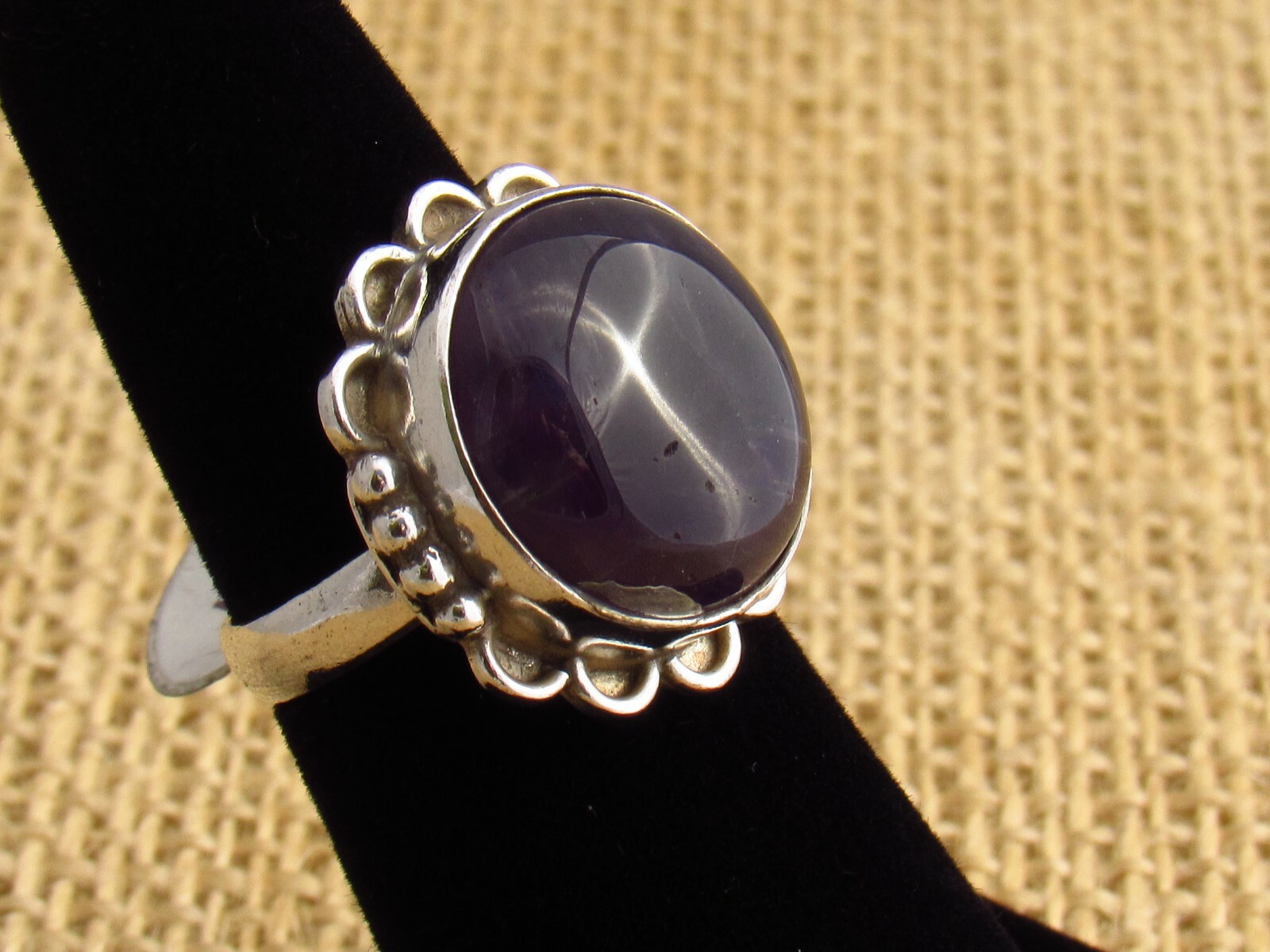 Modernist Cute Round Amethyst Silver Ring Size 7 1/2 Wt. 9 grams