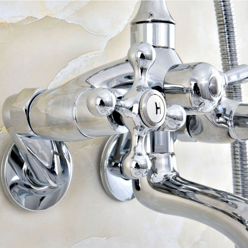 Chrome Wall Mount Bathtub Clawfoot Faucet With Hand Shower Adjustable 3 3/8