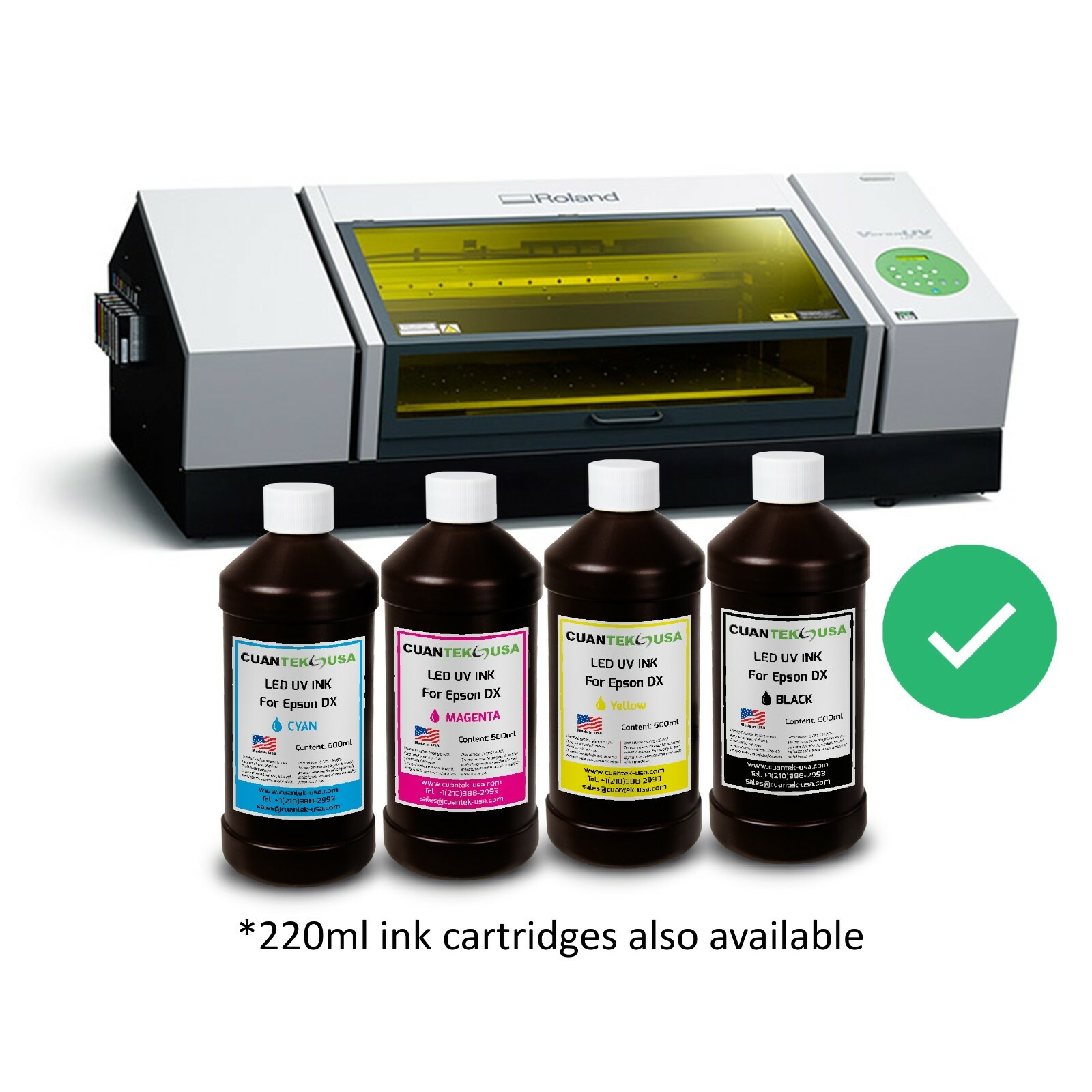 LED UV Curable Inks, 4 X 500ml CMYK, for Epson i3200 DX5 XP600 - MADE IN USA