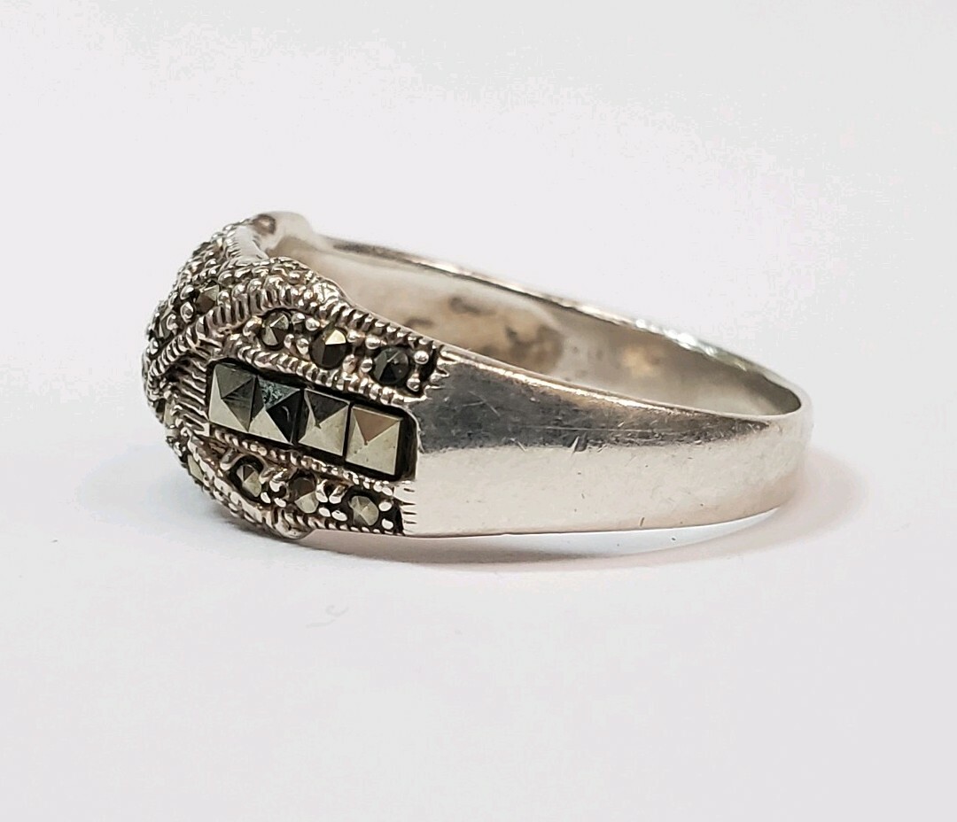 как выглядит Sterling Silver Square and Round Marcasite X Pattern Ring Size 8 3/4 фото