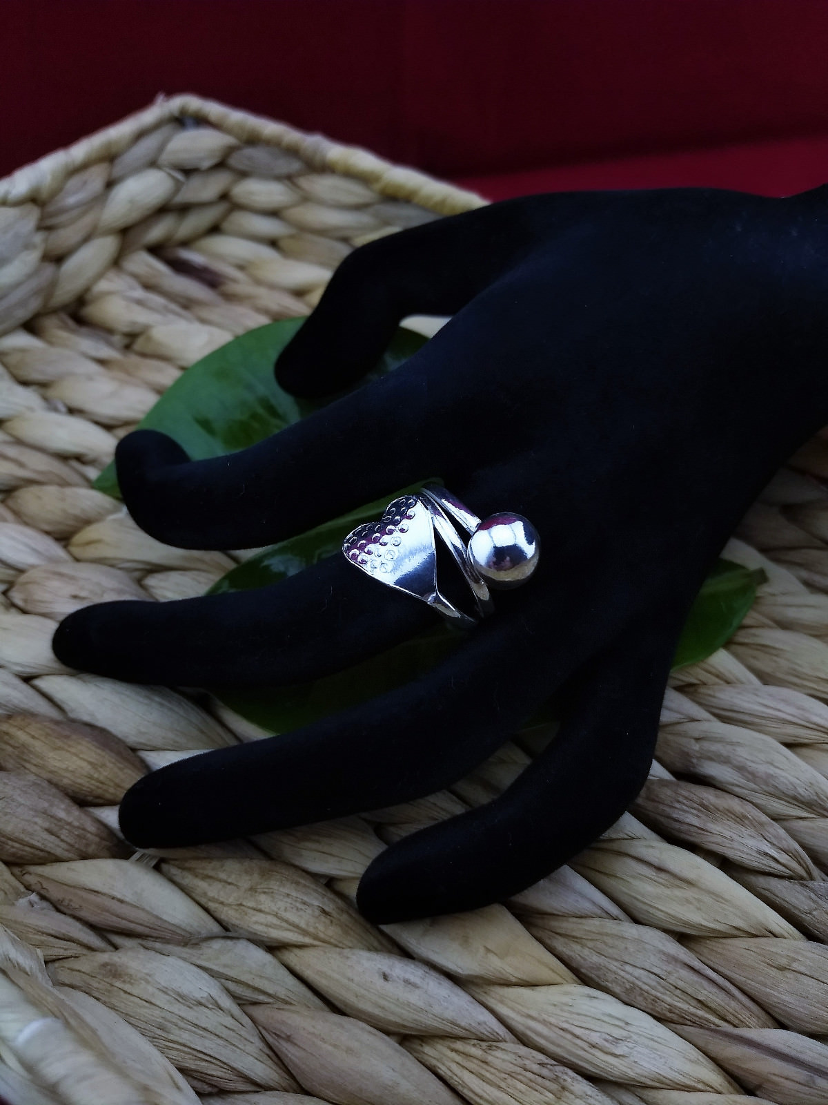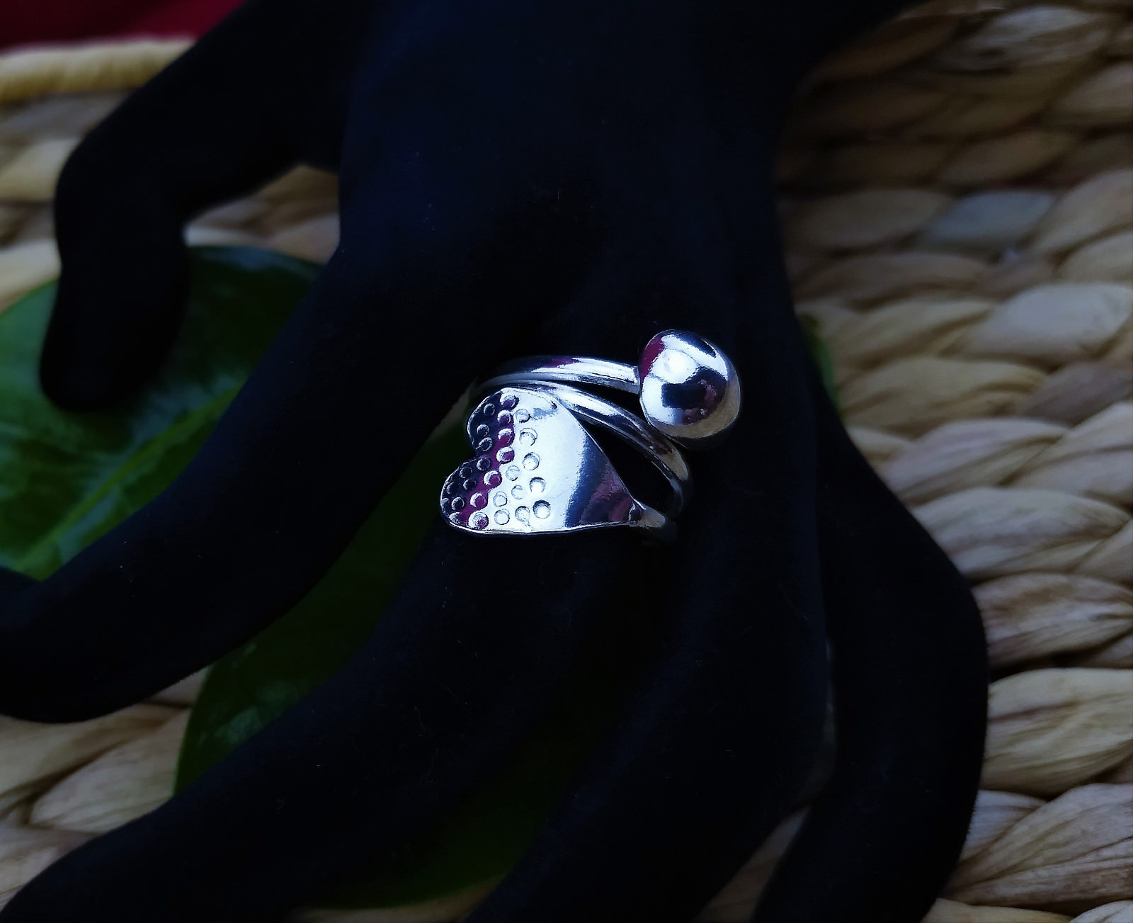 как выглядит Handmade peruvian ring 950 silver with wrought heart and sphere Size 8 фото