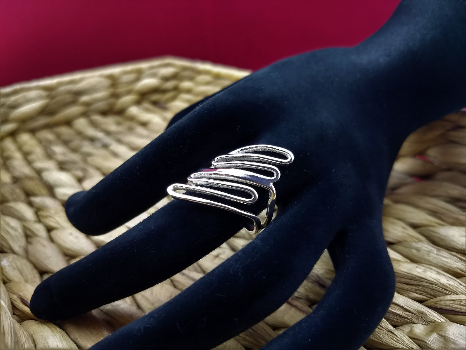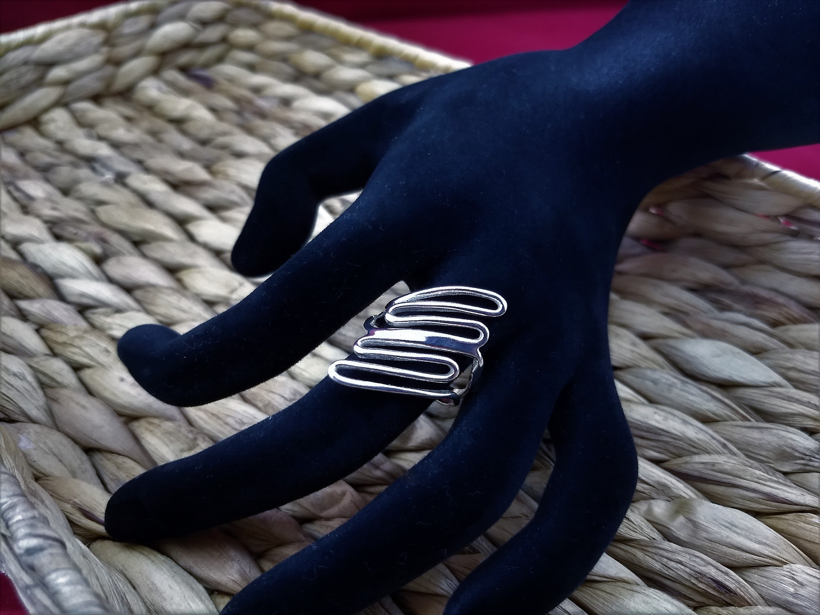 как выглядит Handmade peruvian ring 950 silver wrought diagonal lines shield Size 8.5 фото