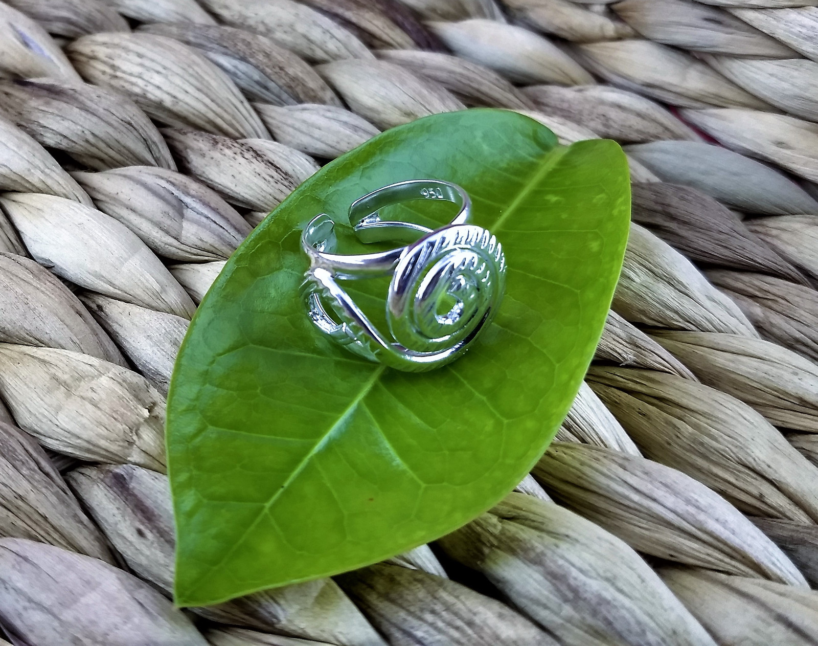 как выглядит Handmade peruvian ring 950 silver with wrought spiral design Size 6.5-7.5 Adjust фото