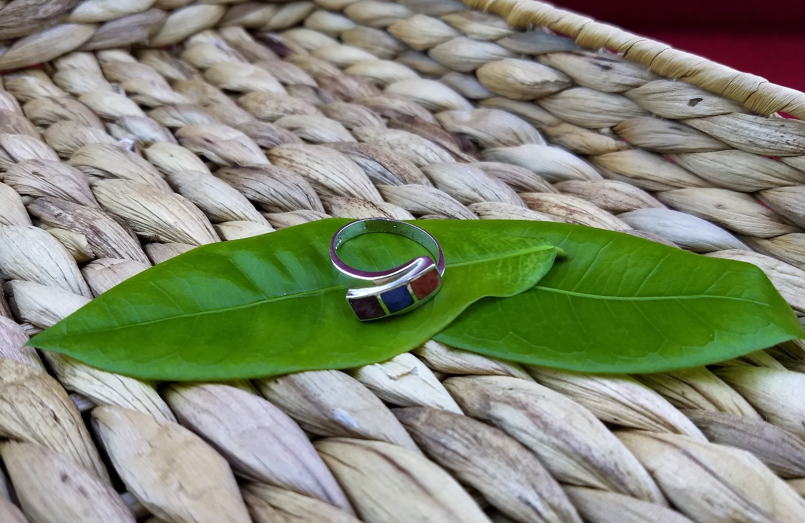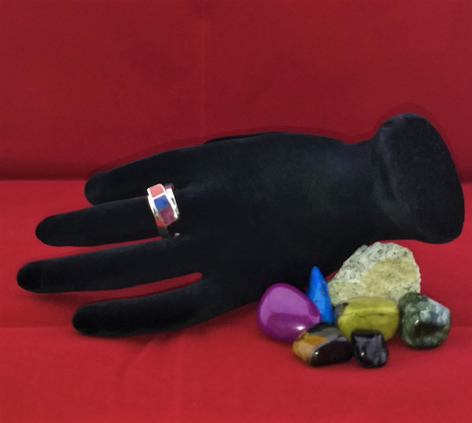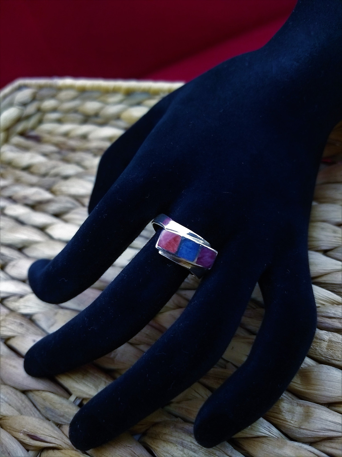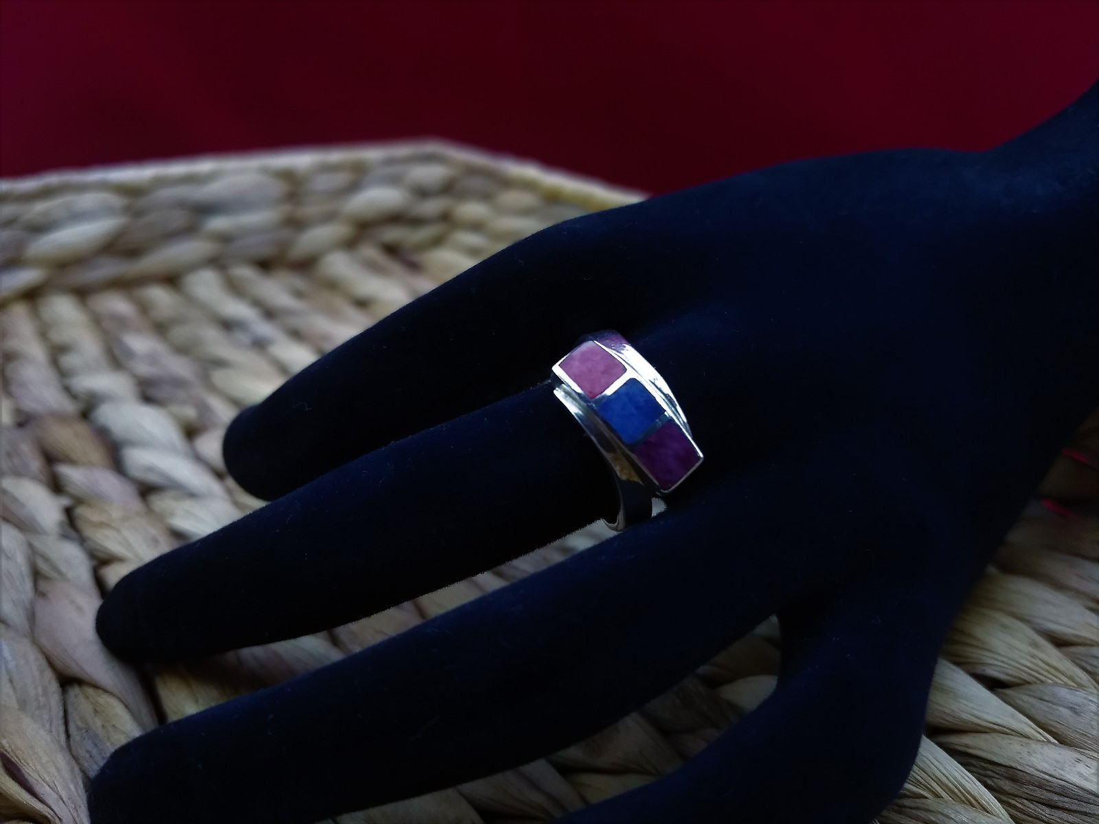 Handmade peruvian ring 950 silver Purple Spondylus,Lapis, Red Spondylus Size 8.5