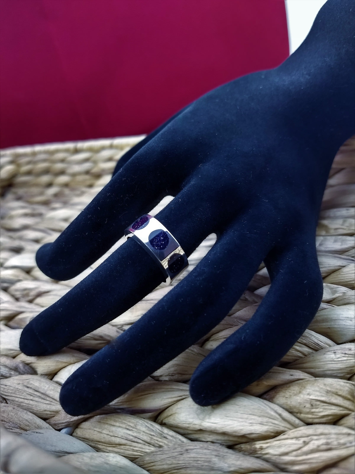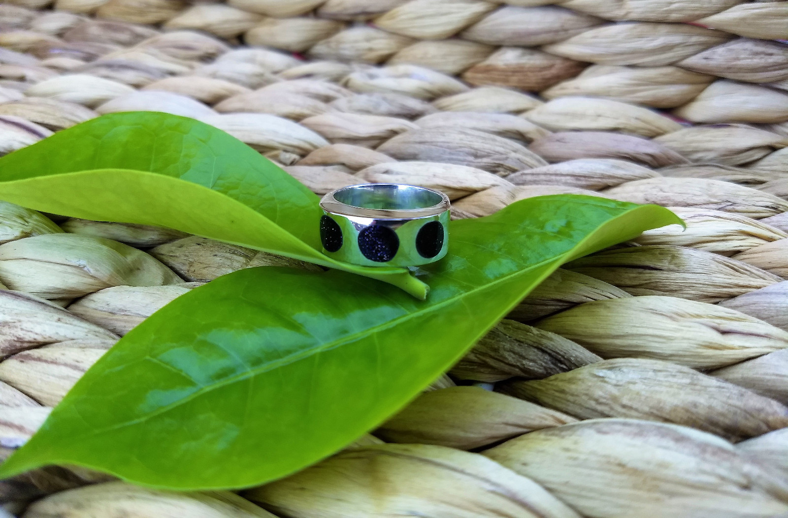 как выглядит Handmade peruvian ring 950 silver with 3 circular goldstone pieces Size 6.5 фото