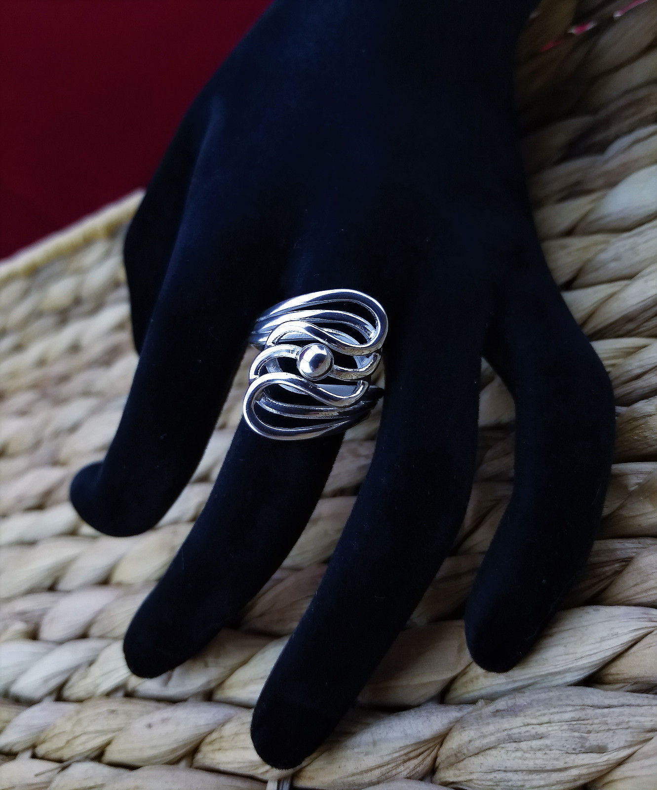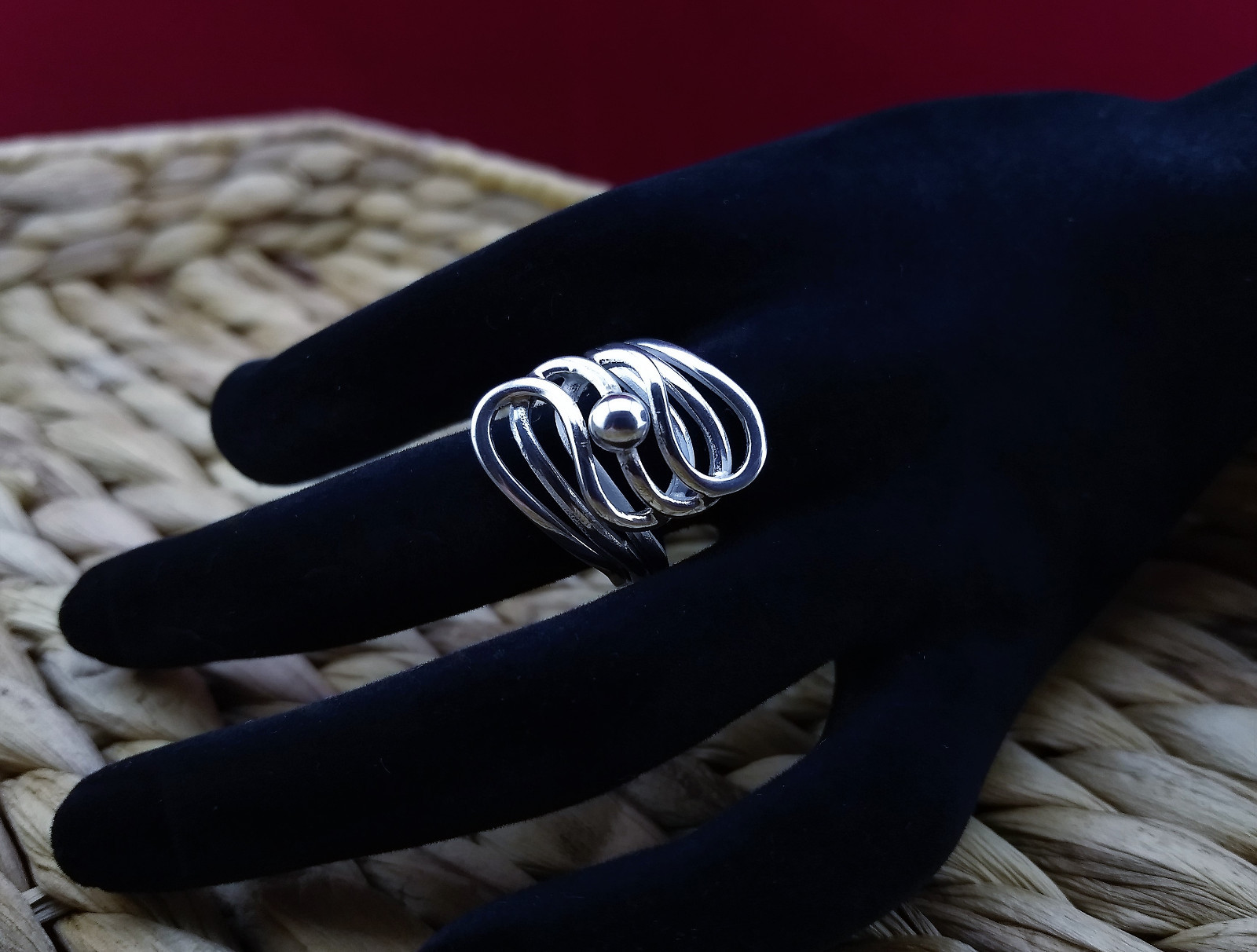 как выглядит Handmade peruvian ring 950 silver w/laces semi sphere wrought design Size 10 фото