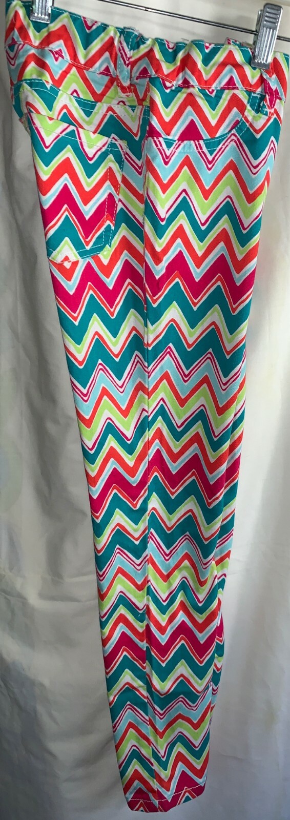 как выглядит PLACE JEGGINGS, GIRLS SIZE 10 WITH STRETCH, ZIG ZAG COLORFUL PATTERN, SIDE TABS фото